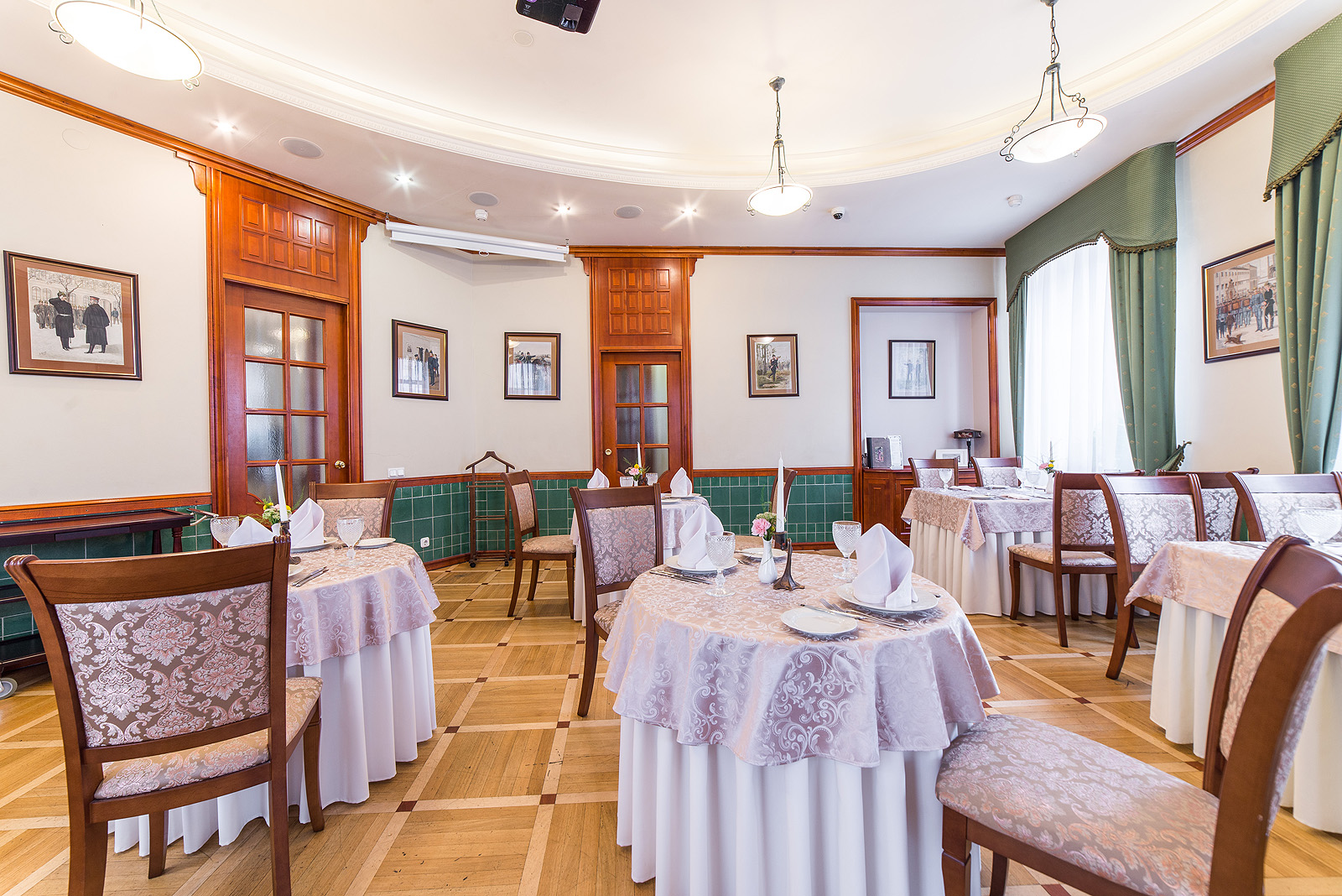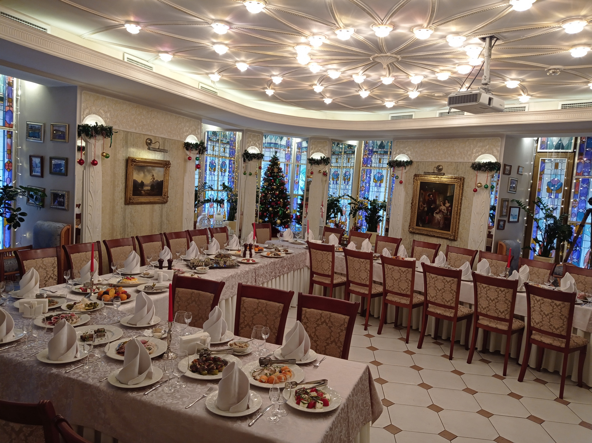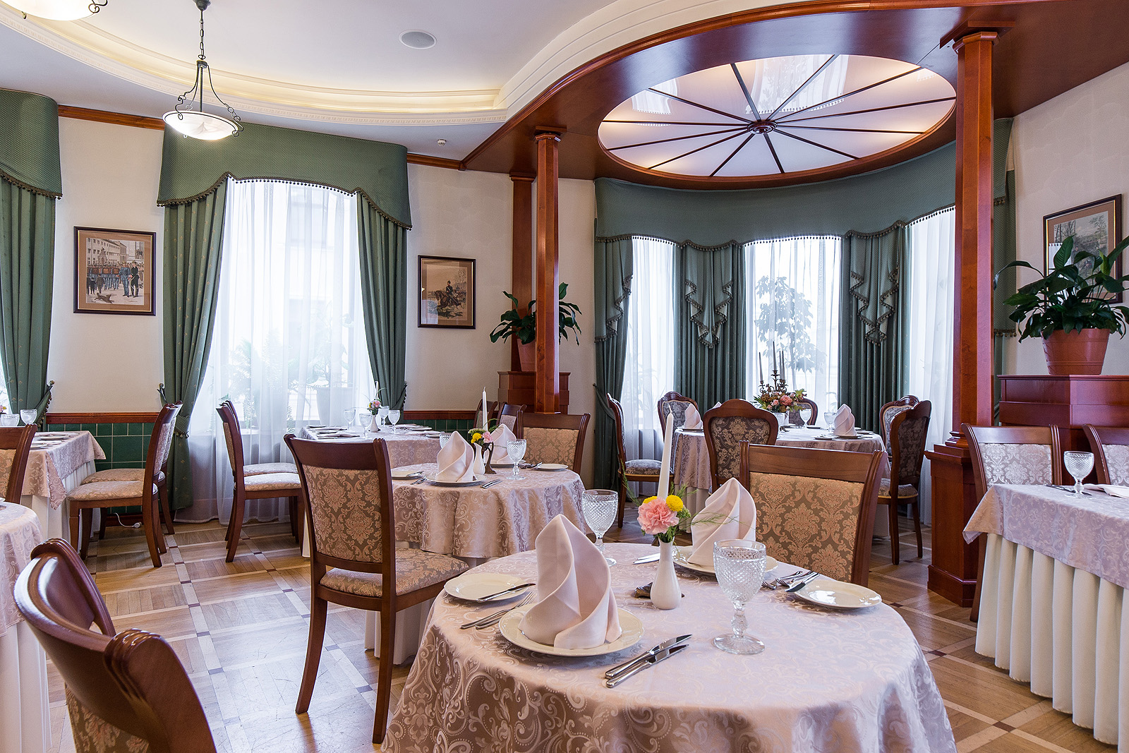 Каждый четверг в зале играет живая музыка — романтичная арфа украсит любой ужин. По будням действует карта обеденной трапезы, ежедневно готовят завтраки (шведский стол с 7:30 до 11:00). Для малышей разработано детское меню, есть принадлежности для рисования.