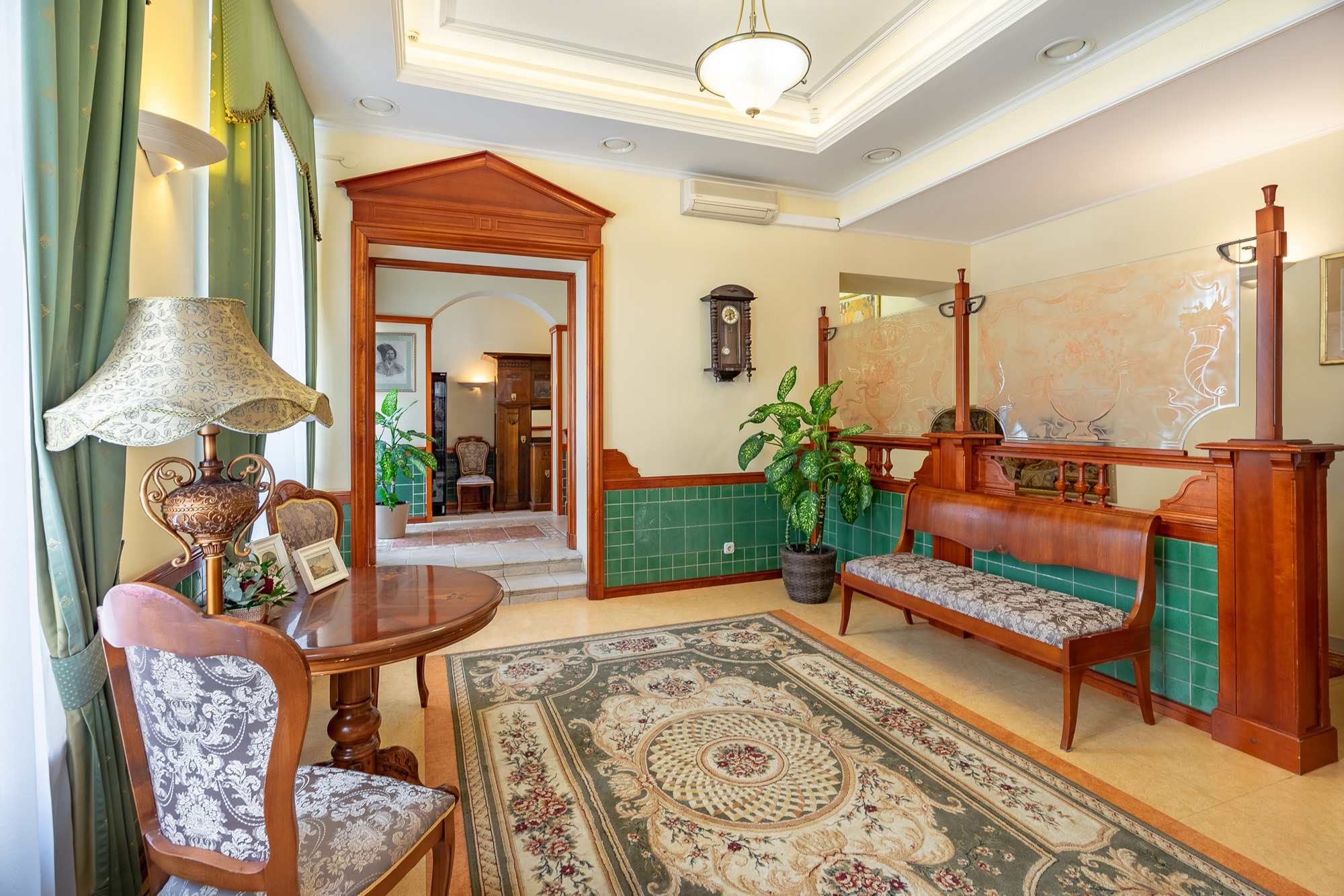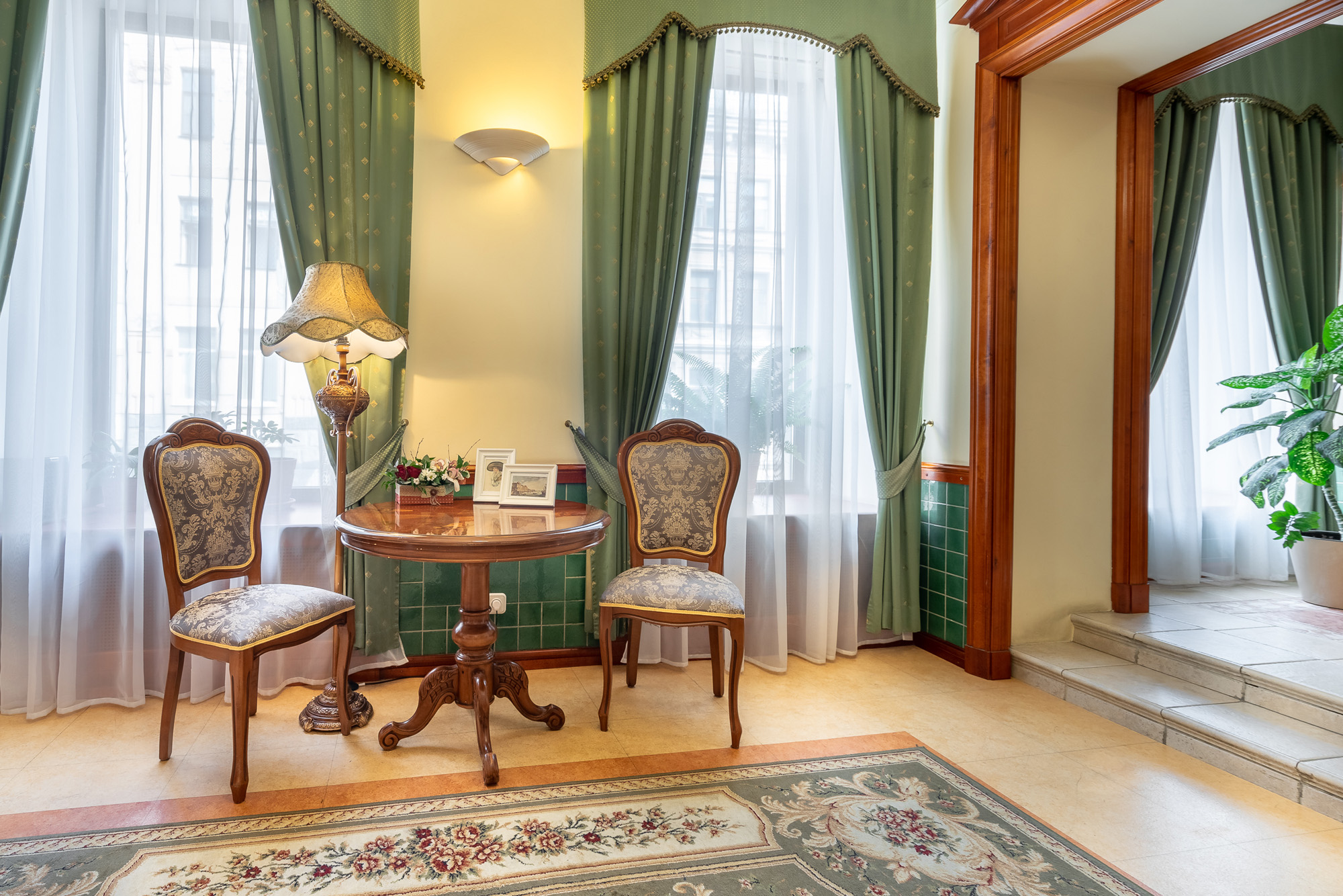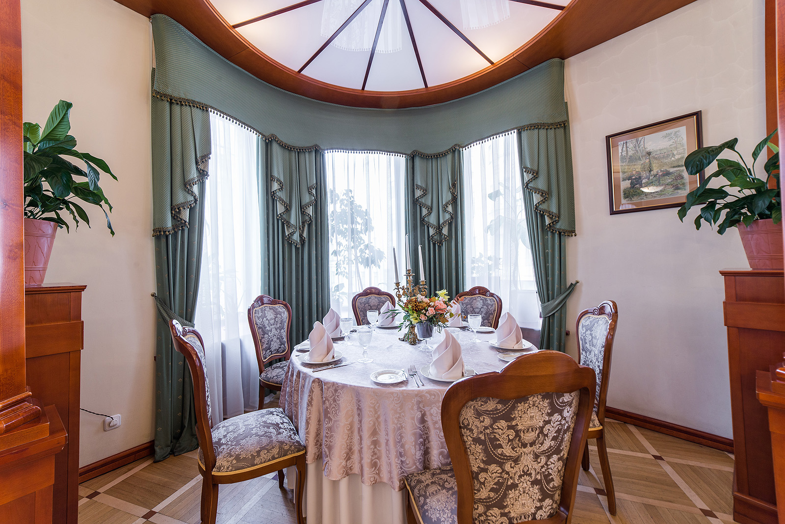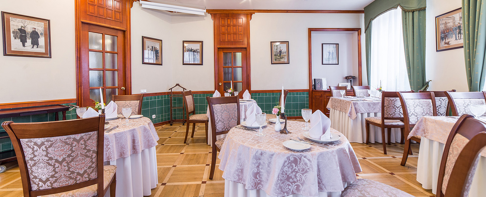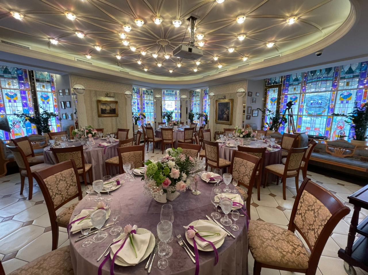 Ресторан 1913 на Вознесенском проспекте находится в центре исторического Петербурга при одноименном отеле. К услугам гостей три зала разной вместимости и дизайна, объединенные общим стилем ар-нуво с плавными линиями, гармоничной палитрой и роскошными витражами. Основной зал отличается парадной обстановкой и подходит для масштабных событий. В интерьере использованы антикварные предметы мебели и декора: часы, резные буфеты, вазы и подсвечники. Высокие окна украшают разноцветные витражи, стены — картины в золоченых рамах.