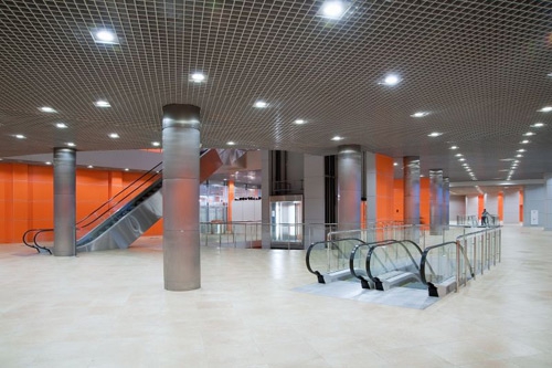 Высота до ферм перекрытия в выставочной зоне - 9,5 м.