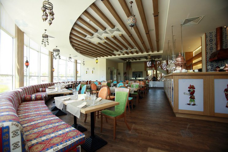 Демократичные цены. Красивый интерьер: столы, небольшие диванчики, изящные люстры, удобные стулья и большая барная стойка. Винная карта пестрит многообразием турецких и зарубежных элитных вин, бренди, живого пива, дорогих виски и напитков. В трехвариантном меню турецкой кухни широкий выбор лакомых горячих закусок и ароматных блюд.