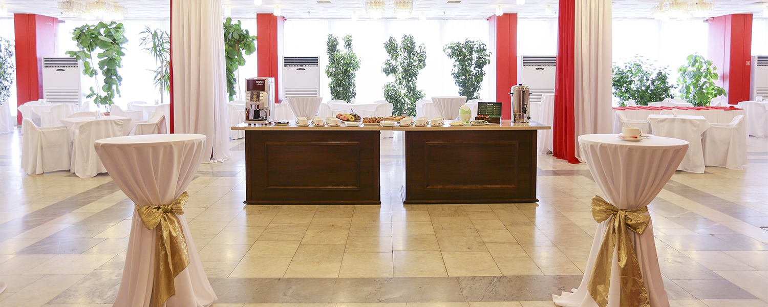 - Выбор банкетных залов – 2 зала на втором этаже отеля, вместимостью от 50 до 300 человек при банкетной рассадке.