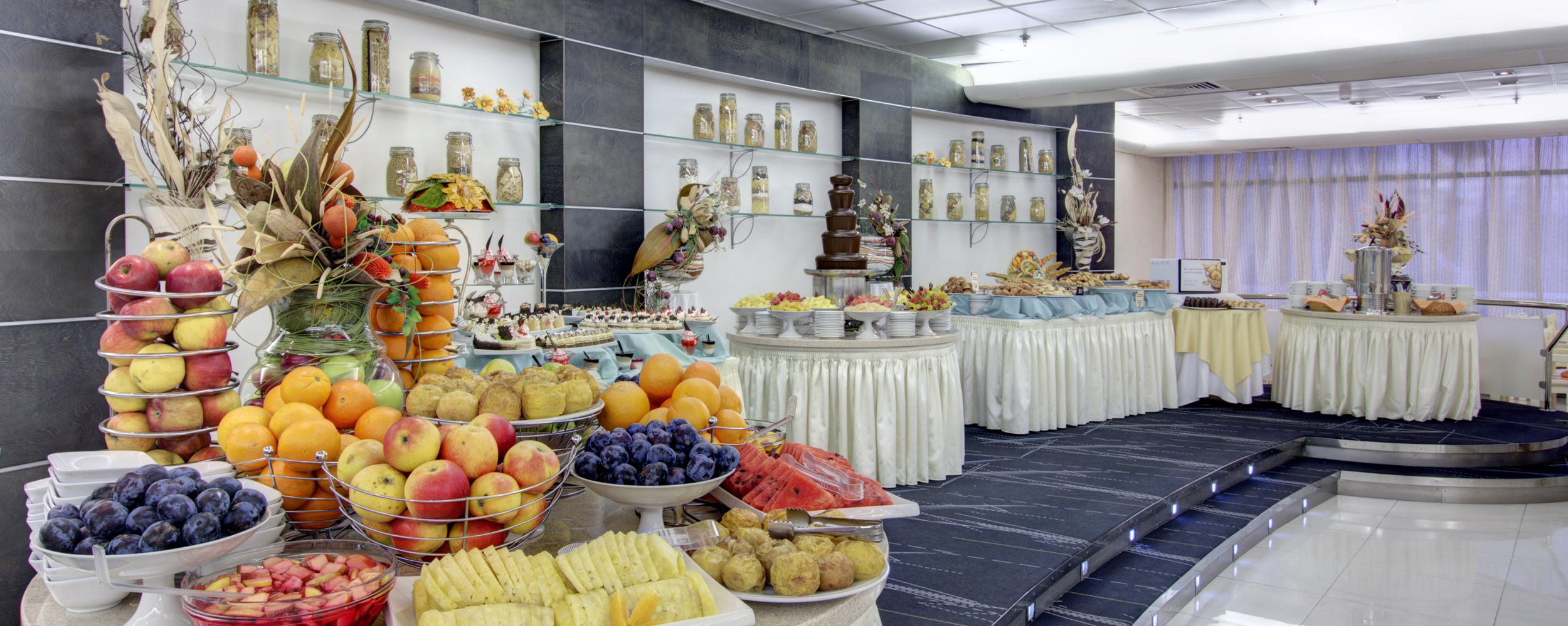 - Высокое качество кухни – богатый выбор горячих и холодных закусок, банкетных блюд из дичи, рыбы, мяса. Деликатесные продукты, экзотические фрукты, гастрономические хиты национальных кухонь, изысканная сервировка.