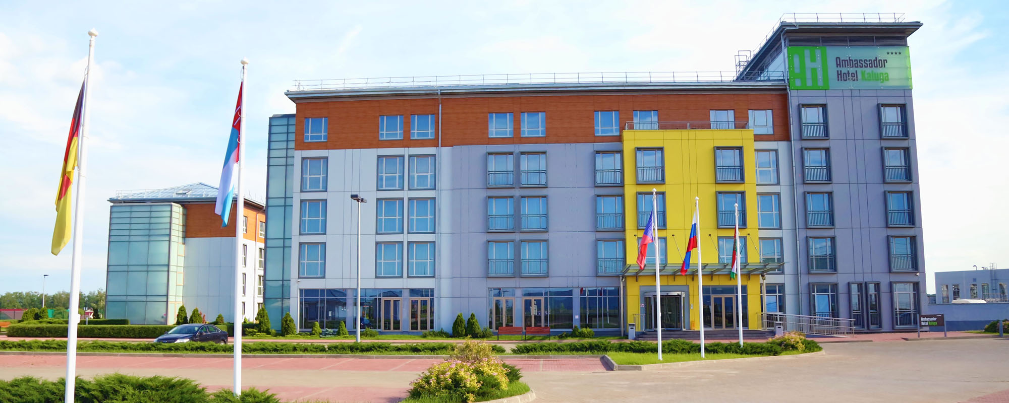 «Амбассадор Калуга — уникальный бизнес отель, который находится в 160 км. км. от Москвы, на территории индустриального парка «Грабцево». Главными достоинствами Амбассадор Калуга являются профессиональный менеджмент, уникальное местоположение и продуманная гостиничная инфраструктура, позволяющие организовывать мероприятия любого формата и уровня сложности, будь то деловые встречи, конференции, корпоративы, выставки, презентации, свадебные торжества или юбилеи.
