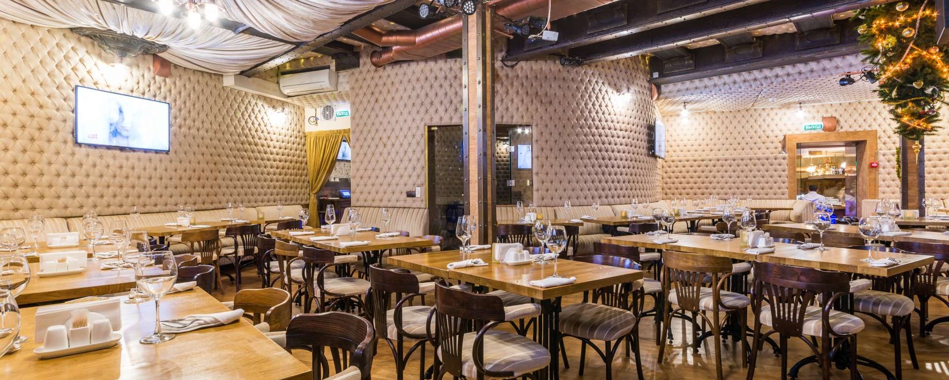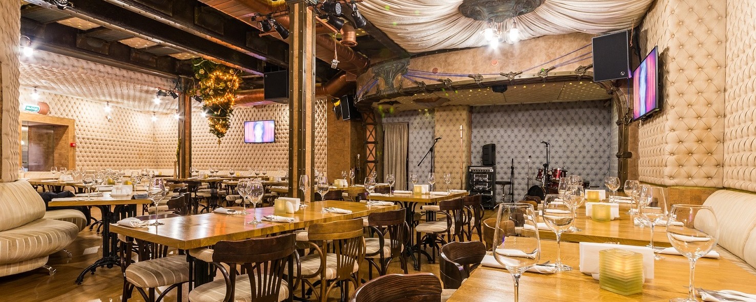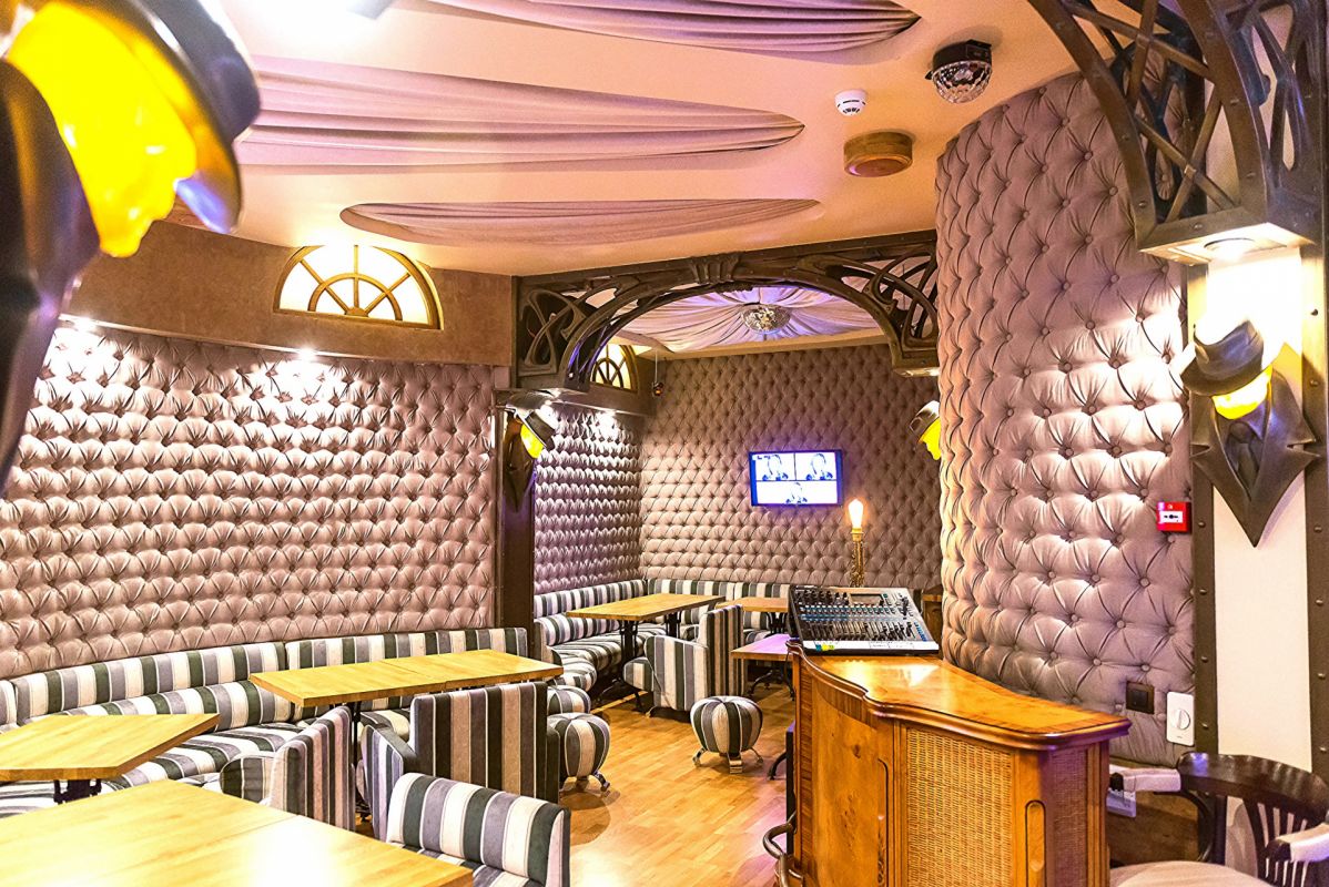 Стиль декора - «арт-нуво» - диктует атмосферу внутреннего пространства ресторана. Впечатляющий бар, «стеганые стены», отличная, многообразная кухня – европейская и русская.