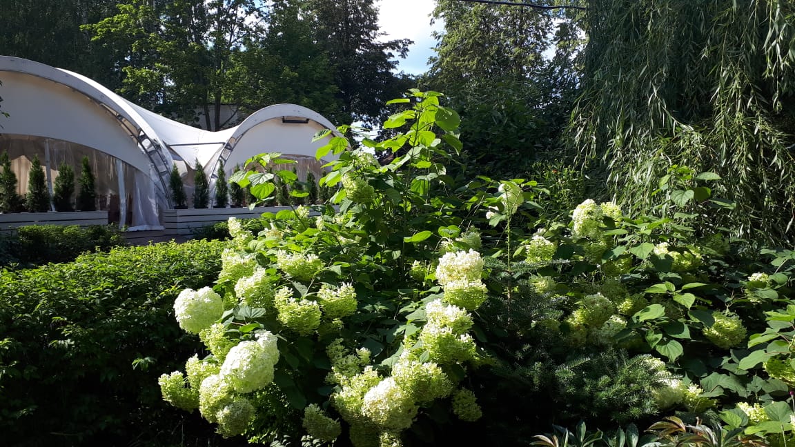 Закрытая территория утопает в зелени, а воздух полон аромата лаванды и других пряных трав. Здесь можно долго гулять по уютным дорожкам среди хвойных деревьев, набредая то на живописный фонтанчик, то на цветочную клумбу, то на уютный белый шатер или беседку. Там, кстати, можно устроить настоящее летнее барбекю, арендовав мангал и другие принадлежности для гриля.