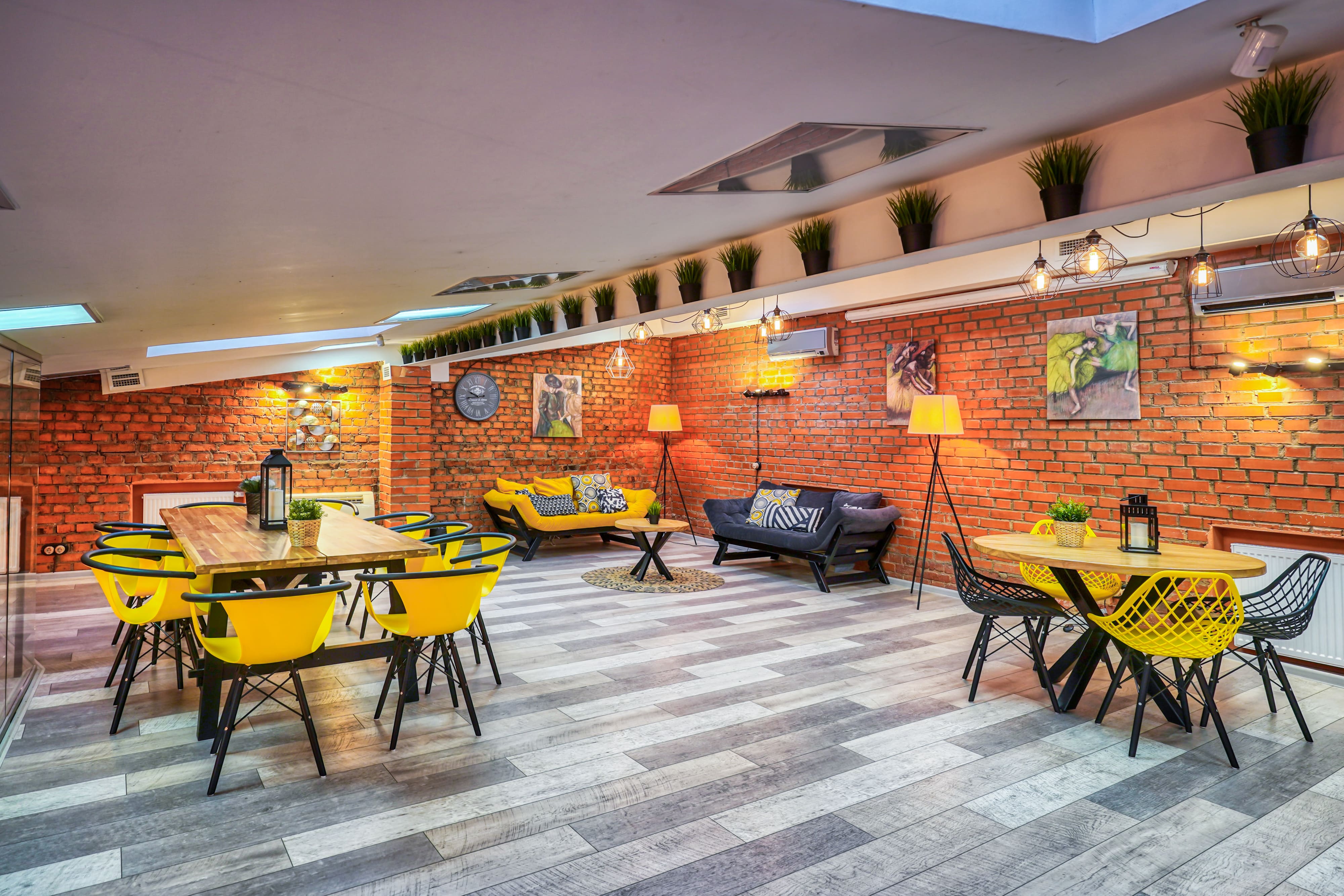 — 14 лофтов на выбор. 7 уютных пространств на Бауманской и 6 на Таганской + 2 здания в аренду целиком. Площади помещений варьируются от 30 до 190 кв. М, а вместимость — от 15 до 120 человек. Аренда 6 часов уже включена в стоимость!