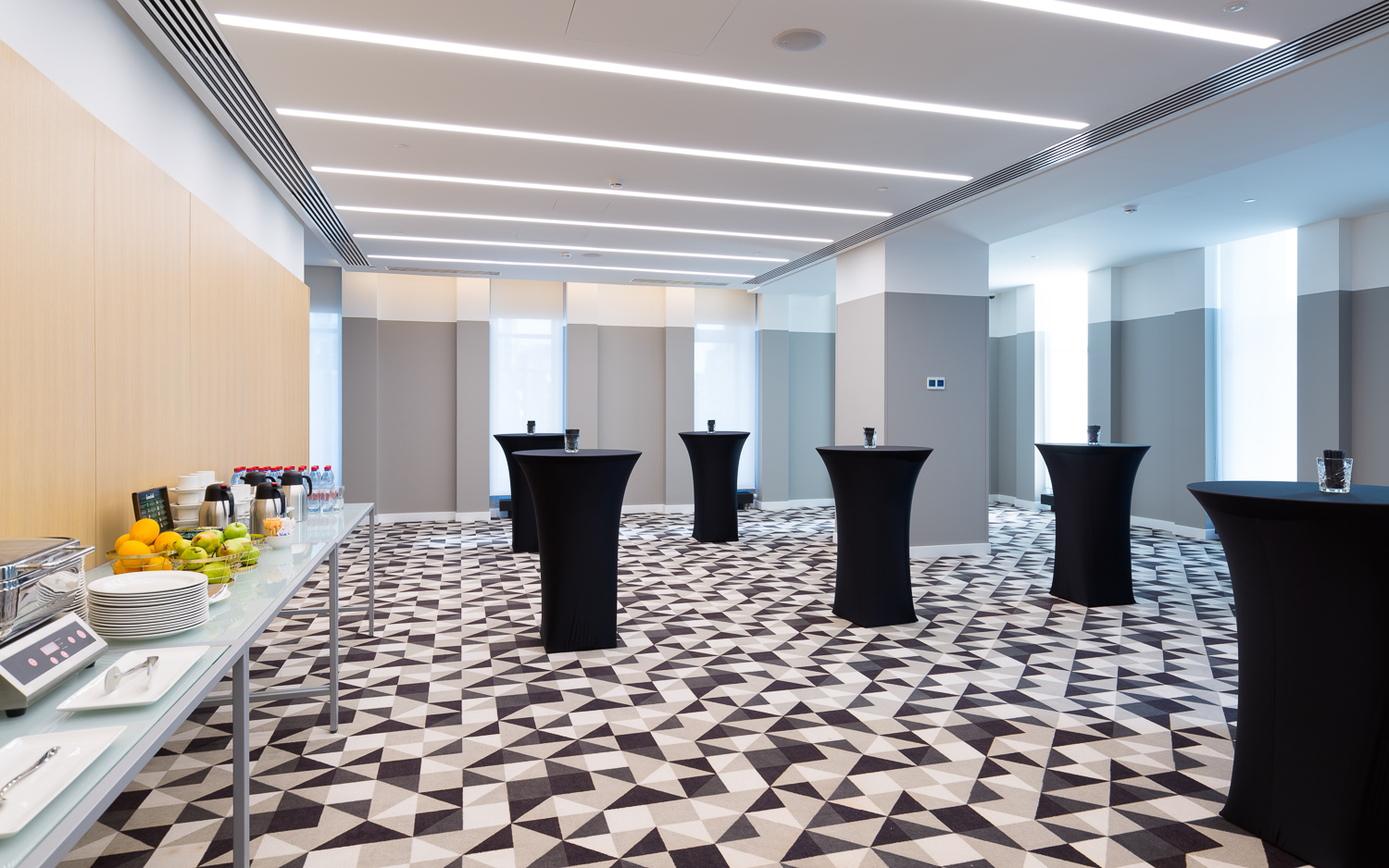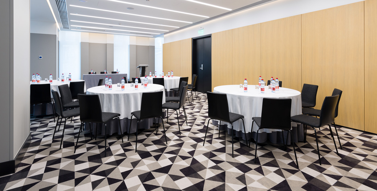 Для конференцийи мероприятий AZIMUTОтель Смоленская предлагает 8 залов-трансформеровот 56 до 416 кв.м., общей вместимостью более 800 человек. Три отдельные кофе-брейк зоны с широкими возможностями для обслуживания Гостей в период проведения мероприятий и два гардеробных помещения, каждый по 15 кв.м. Все залы оснащены современным мультимедийным и презентационным оборудованием. Отель располагает подземным паркингом на 25 парковочных мест.