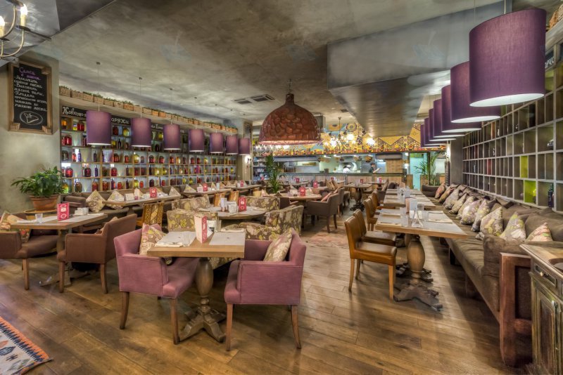 Петербургские гурманы и любители хорошей узбекской и кавказской кухни знают это место в ТРК «Галерея» давно: это, конечно же, ресторанБаклажан. Большое пространство зала, стилистически исполненное в виде торговой лавочки – с корзинками расставленных тут и там овощей-фруктов, деревянная мебель с отлично вписанными разноцветными диванчиками и пуфами: в эту атмосферу сложно не влюбиться.