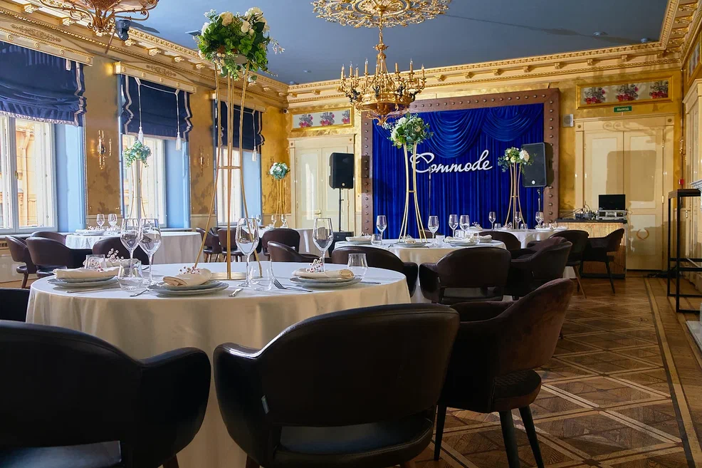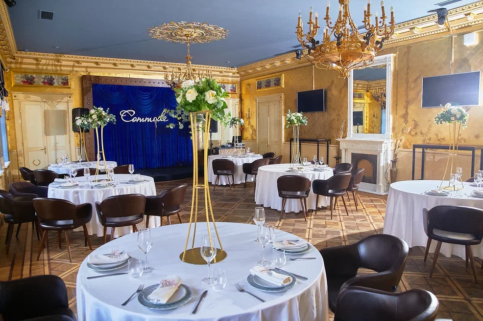 Банкетный зал «Золотой» является частью ресторана-клуба Commode, зарекомендовавшего себя профессионалом в организации масштабных, запоминающихся мероприятий, что является нашим несомненным преимуществом. С нами работают лучшие ведущие и диджеи, кавер-группы и музыканты, фокусники и артисты. Для Вас мы составим любой сценарий, поможем в подборе декора и поиске подрядчиков для любого события.