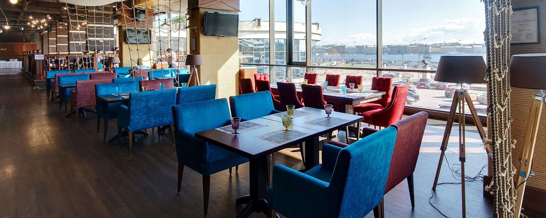 Атмосфера ресторана располагает не только к отдыху или неспешной беседе, но и к веселью в дружеской компании или корпоративному празднику. Специальное зонирование ресторана удобно для проведения встречи или романтического ужина с видом на акваторию Невы, а также праздника или корпоративного мероприятия.
