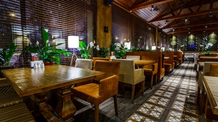 Основной зал рассчитан на 80 гостей, есть VIP - кабинет вмещающий 12 гостей.