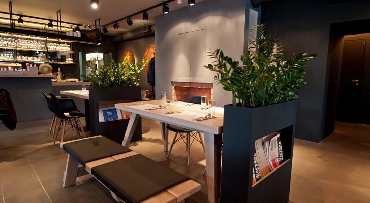 Внешний облик ресторана «Brut» на Выборгской набережной можно смело назвать неповторимым. Его уникальность в том, что простота, даже кажущаяся слегка нарочитой, необычным образом складывается в нечто оригинальное и запоминающееся. То ли дело здесь в очень спорном для северной столицы с её бессолнечностью обилии черного цвета, который, однако, именно здесь выглядит не мрачным, а бархатным и нежным. То ли в странной трансформации простого светлого дерева, которое на фоне того же черного вдруг начинает казаться золотым. То ли в совокупности и какой-то магической притягательности местной геометрии - очертаний столов, стульев, элементов декора - то плавных, то по-конструктивистски резких и прерывистых. То ли во всём этом, сливающемся в единое, удивительное цельное и ни на что не похожее пространство.