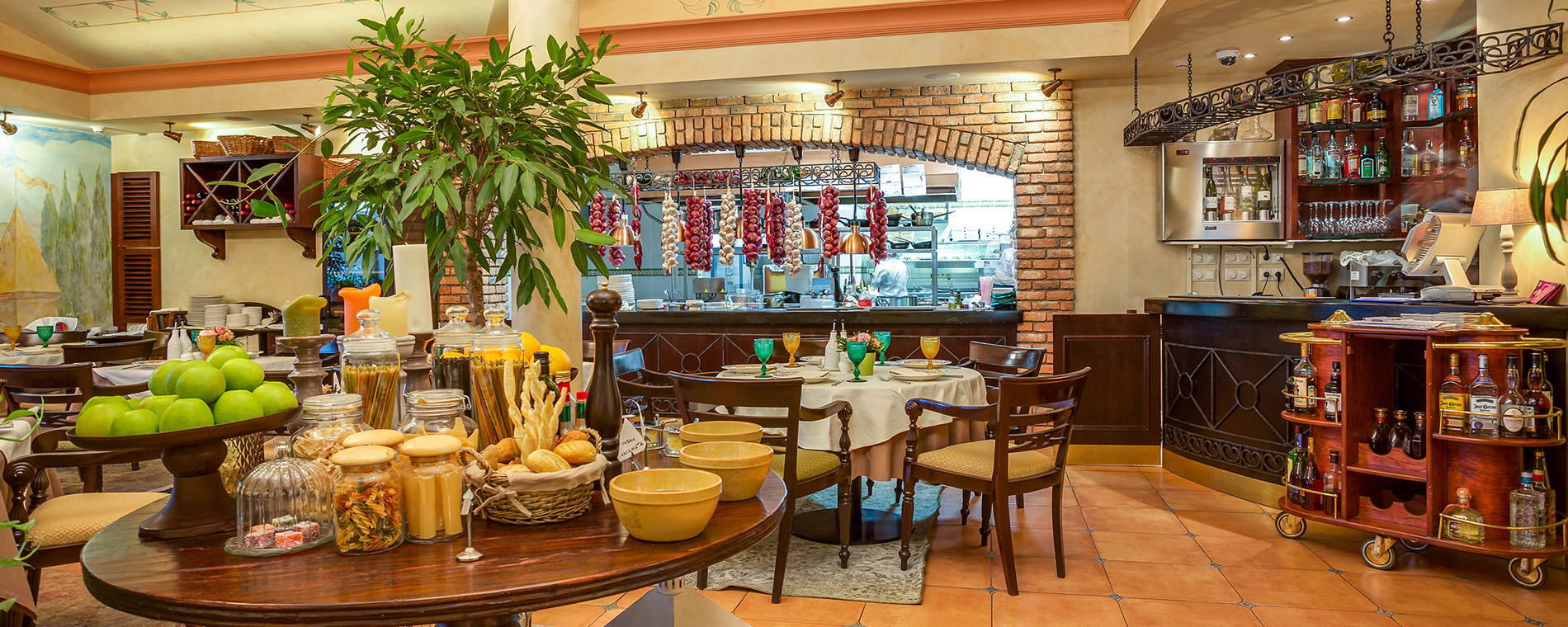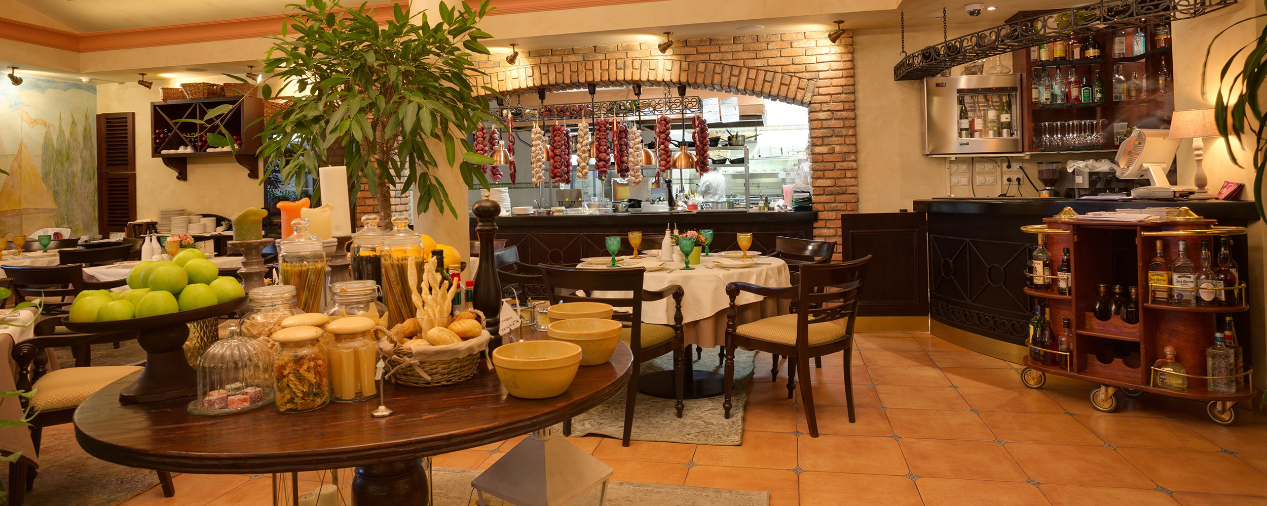 Здесь вас встречают как долгожданного и родного гостя, здесь легко проникнуться ощущением домашнего очага и, еще не покинув CASA MIA, уже захотеть сюда вернуться. Или захотеть немедленно взять билет на самолет в Венецию только за тем, чтобы посидеть в траттории где-нибудь в районе Каннареджо и насладиться душевной атмосферой. Возможно, там будут точно такая же открытая, облицованная кирпичом, кухня, мандариновые деревья и фрески ручной работы, как в CASA MIA. А если покупку билета в Венецию пока приходится отложить, то роль телепорта может выполнить кухня ресторана – итальянская домашняя в лучшем своем исполнении, как в любимых итальянских местах.