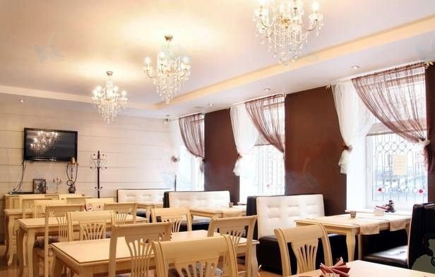 Нежные пастельные тона интерьера, полупрозрачные гардины обрамляют окна, еле прикрывая вид на город, хрустальные люстры, мягкие диваны.. Светло, уютно, мягко.. Домашнюю атмосферу дополняют радушные, вежливые сотрудники, встречающие каждого гостя, как родного и единственного..