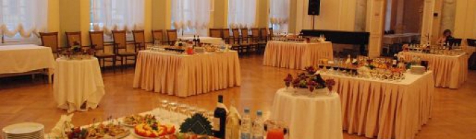 Интерьер ресторана Дома актёра полностью соответствует своему аристократическому прошлому, прекрасные залы будто специально предназначены для празднования особенных торжеств. Высловно возвращаетесь насотню лет назад иоказываетесь наприёме водворце известного графа или князя— кариатиды, пышная лепнина, зеркала. Всё это делает залы ресторана очень выгодной декорацией для проведения банкетов самого высокого уровня, втом числе свадеб, юбилеев, выпускных вечеров, корпоративов ипрочих торжественных мероприятий. Правда, первое впечатление несовсем верное, ведь вэтих старинных интерьерах имеются такие современные технические средства как проекторный экран, звуковое исветовое оборудование,Wi-Fi, что значительно расширяет возможности проведения праздника.