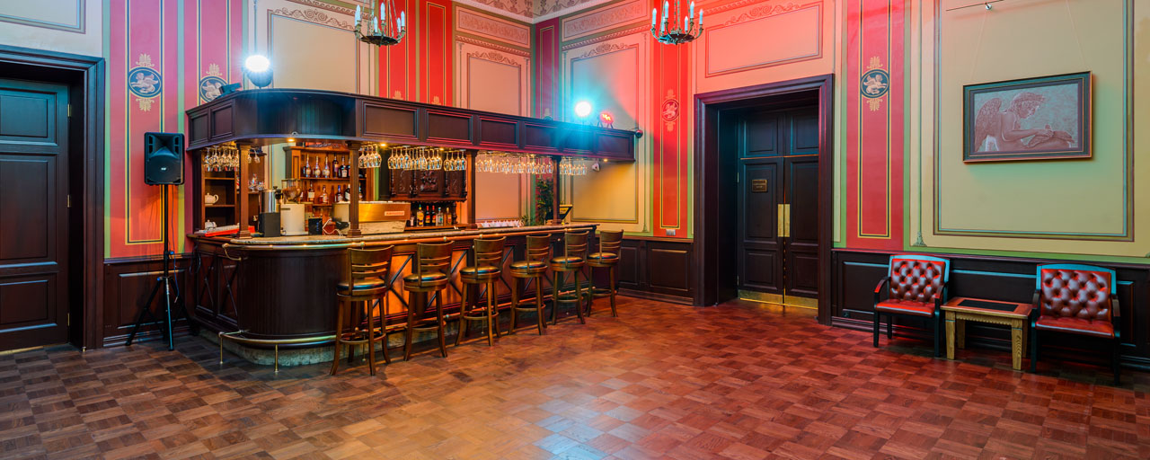 Пространство двухэтажного особняка завораживает настенными росписями, лепными узорами и дубовыми потолками. Интерьеры дворца – идеальная площадка для проведения различных мероприятий.