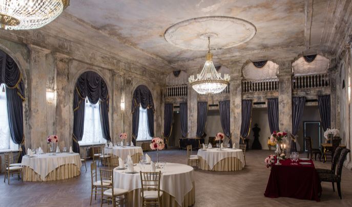 Завораживающий интерьер, потрясающая акустика и профессиональное световое оборудование создают идеальные условия для проведения балов, модных показов и концертов. Подлинная мебель XIX века, тяжелые бархатные портьеры создают особый театральный эффект. Вместительность зала позволяет принять 180 гостей на банкет и до 400 на фуршет. Безусловно, любое торжество, организованное здесь, будь то светское мероприятие или корпоративный праздник, станет незабываемым.