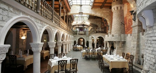 Архитектура здания напоминает старинный замок с огромным парком. На опушке леса развернут огромный шатер, под которым можно за неспешной трапезой насладиться чистым воздухом и природой. Шум фонтана поможет отвлечься от городской суеты. Для детей предусмотрена детская развлекательная площадка, очень удобная, и безопасная. Гостеприимный персонал, спокойная атмосфера, месторасположение сделают отдых или деловую поездку максимально комфортной и приятной.