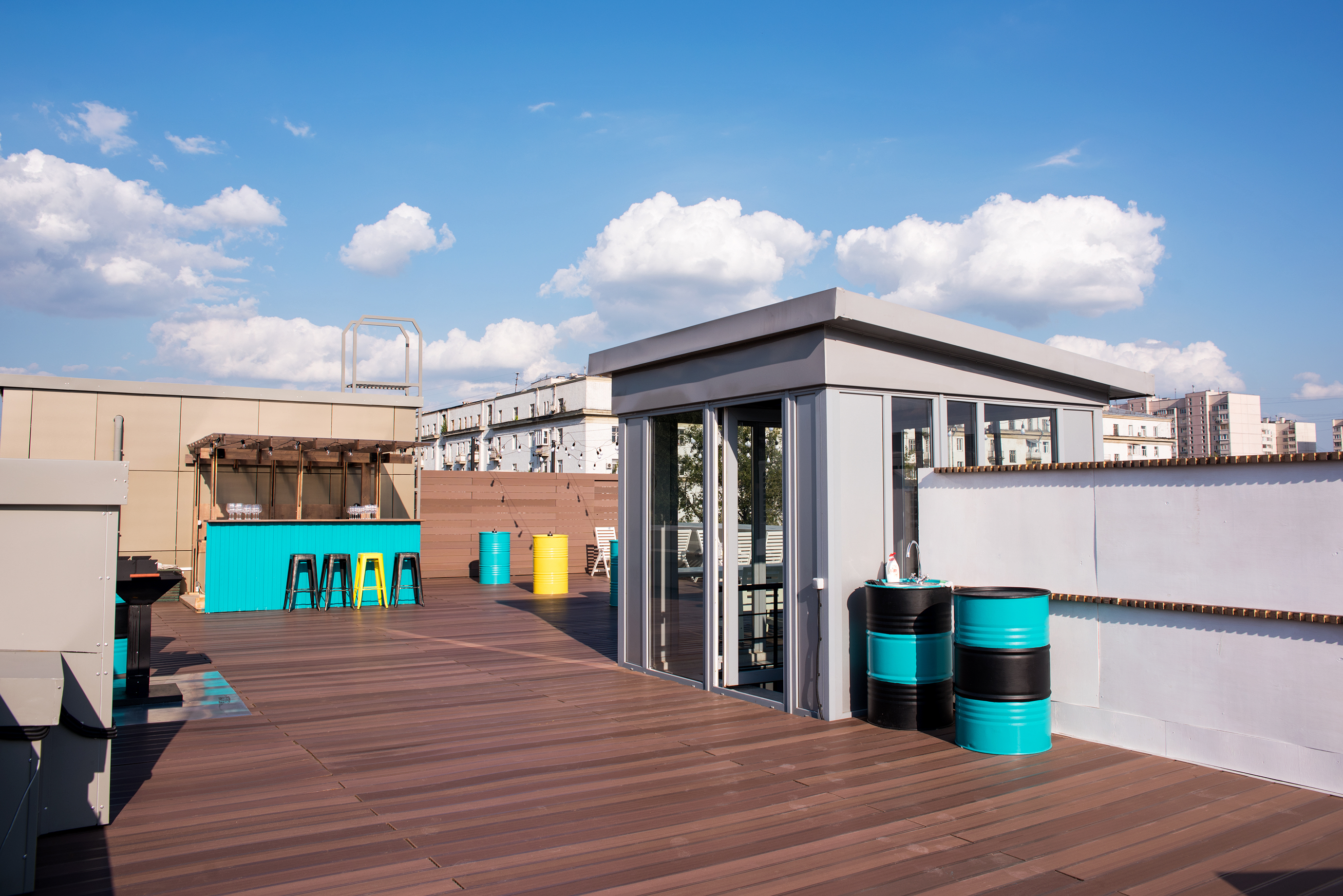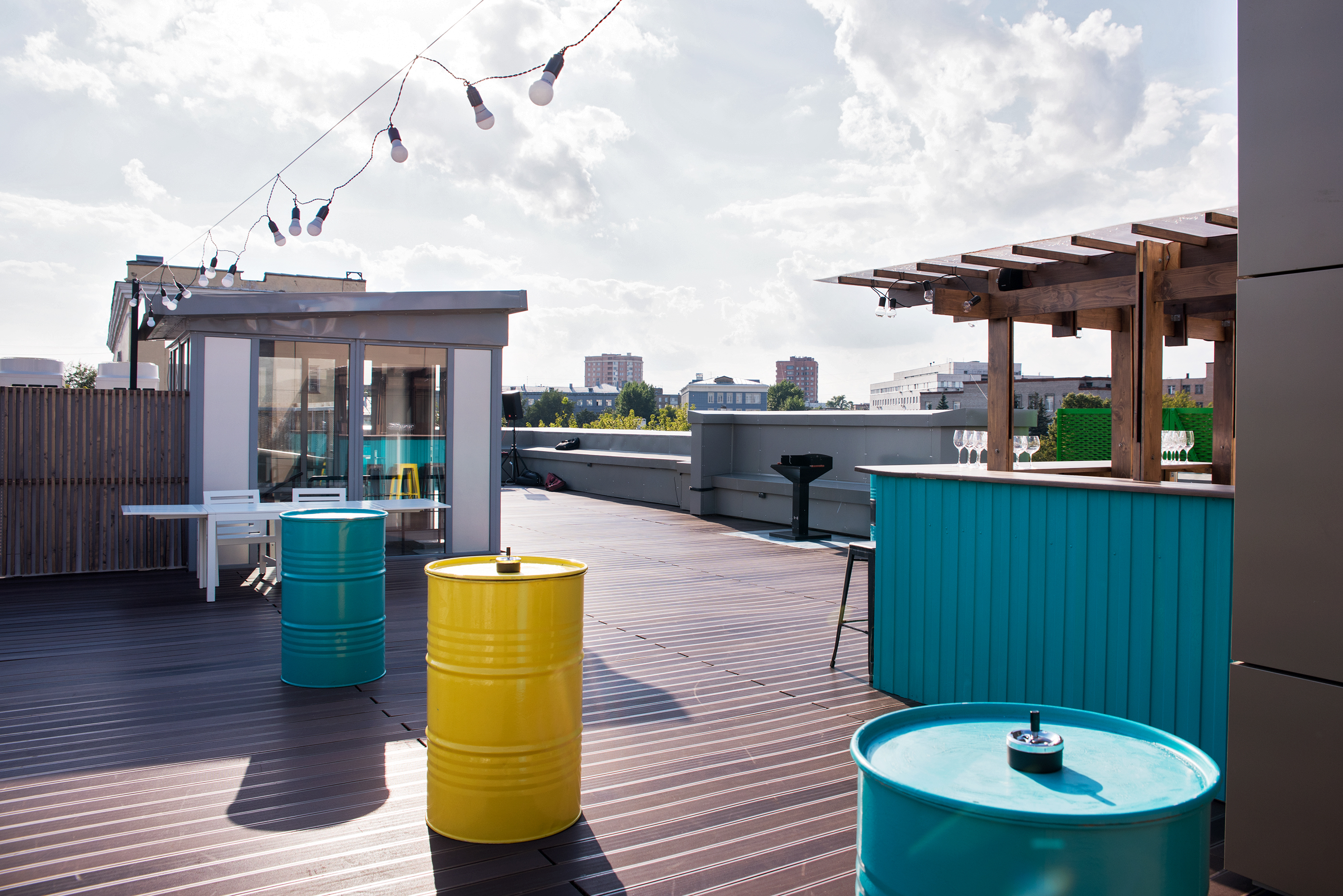 Расположение лофта в достаточном отдалении от жилых домов позволяет проводить вечеринки и шуметь круглосуточно. В стоимость уже входит все необходимое: аренда помещения, посуда и приборы, помощь администратора во время мероприятия, уборка пространства до, во время и после мероприятия, обеспечение порядка охраной, настольные игры, кикер, профессиональный звук.