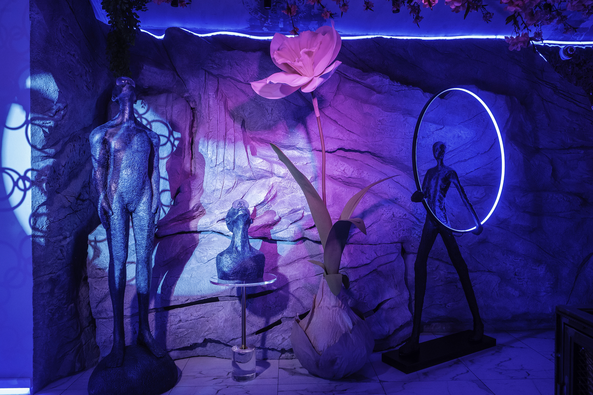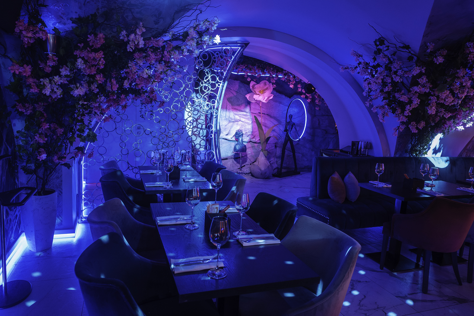 Благодаря переплетенным ветвям растений, свисающих с расписанных вручную стен, потолка и металлоконструкций, создается ощущение принадлежности к некому магическому затерянному замку, получившему новую жизнь.