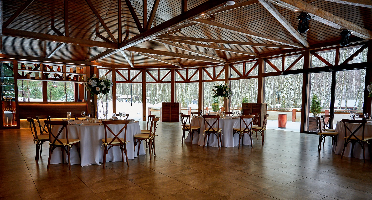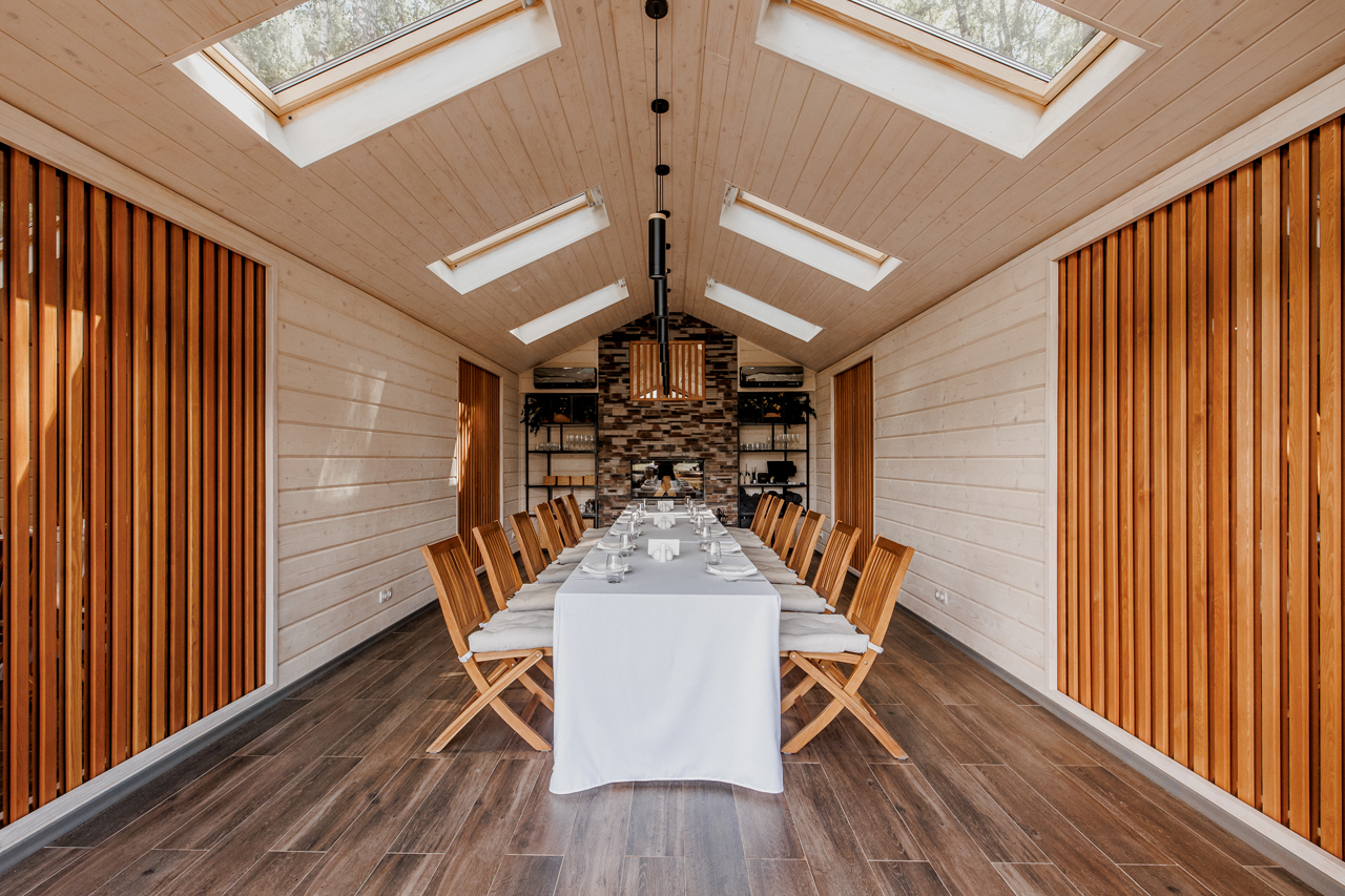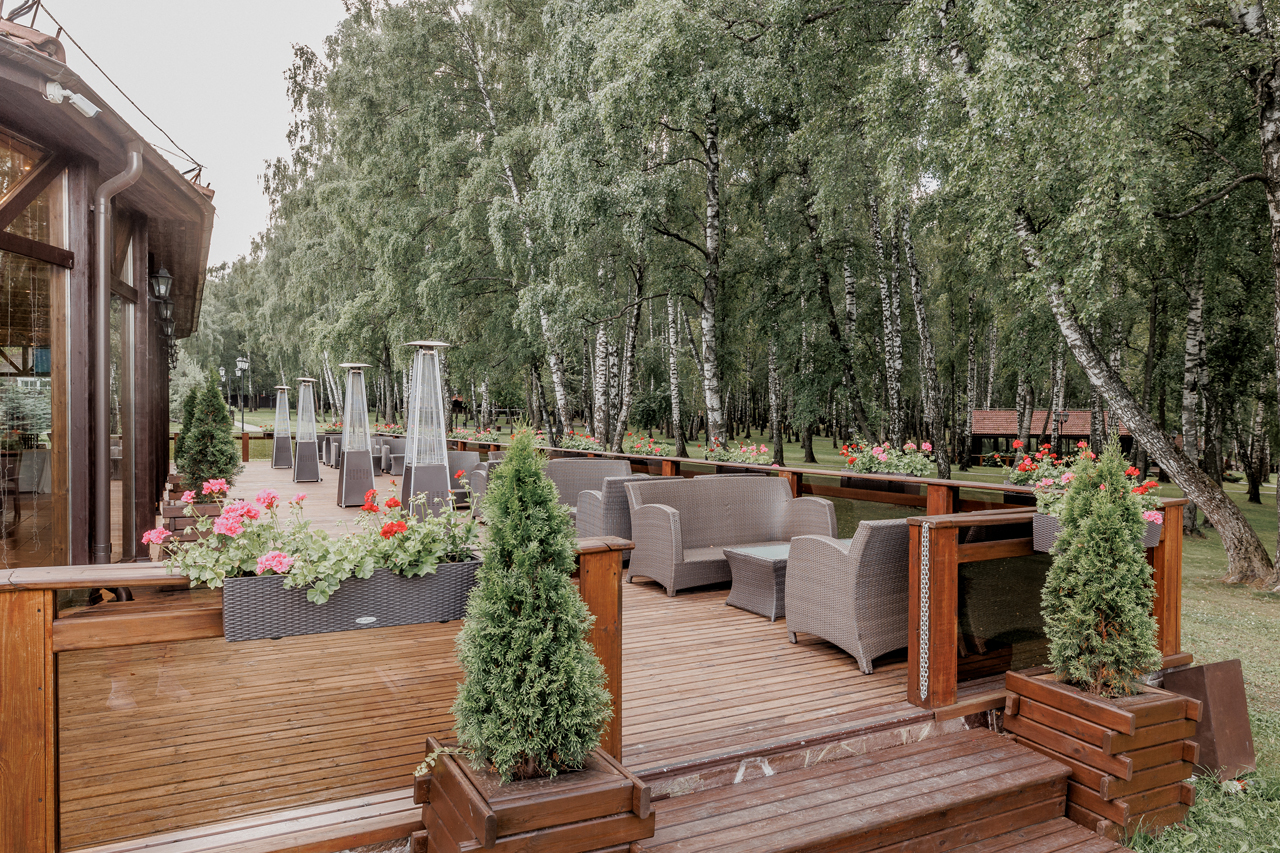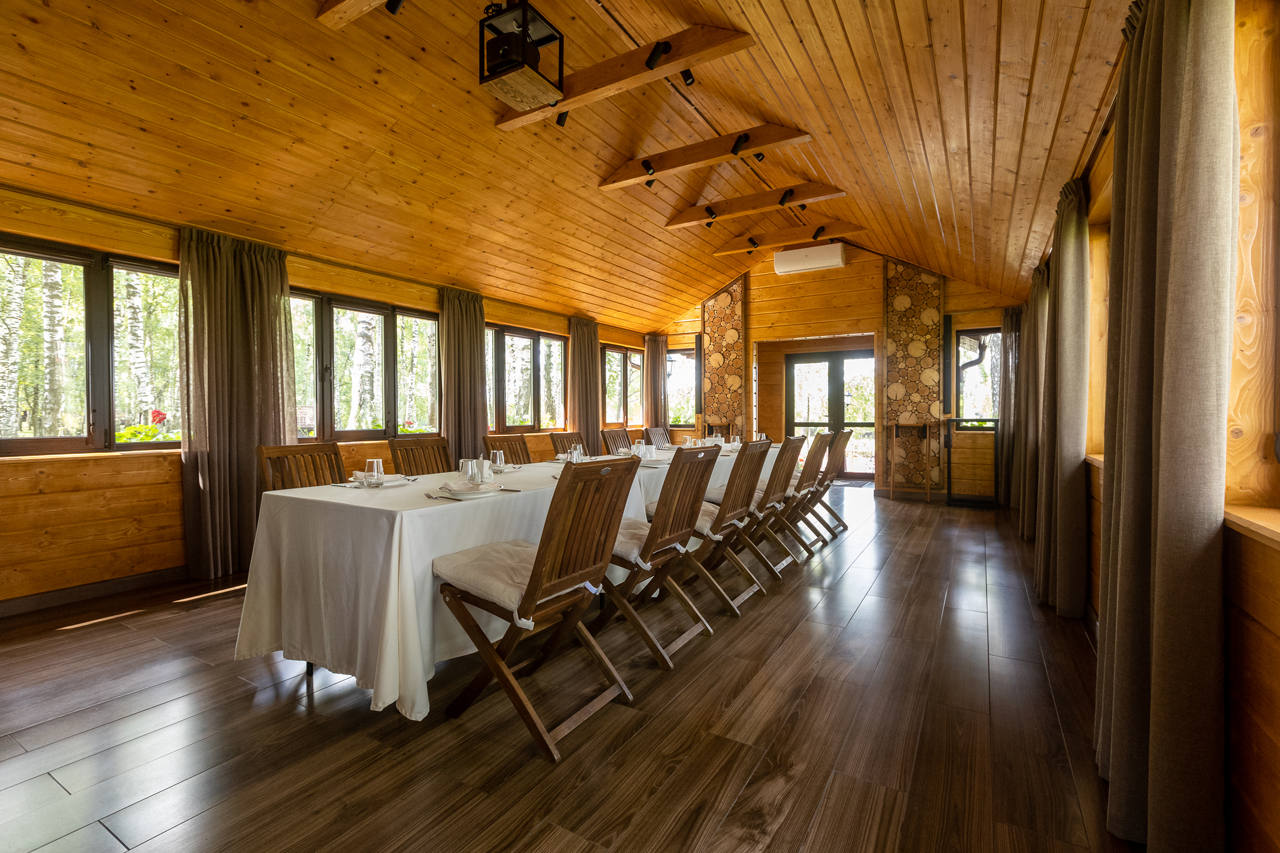 Эко-отель 4* на той же территории, что и площадки для мероприятий. Для событий, занимающих более одного дня, это прекрасная возможность продлить праздник. К услугам гостей – домики семейного формата и коттеджи на 10-12 человек, отдельный spa-центр с бассейном и русская баня. Все здания комплекса расположены в стороне от банкетных площадок и окружены пушистыми елями: мы заботимся о тишине и комфорте отдыхающих.