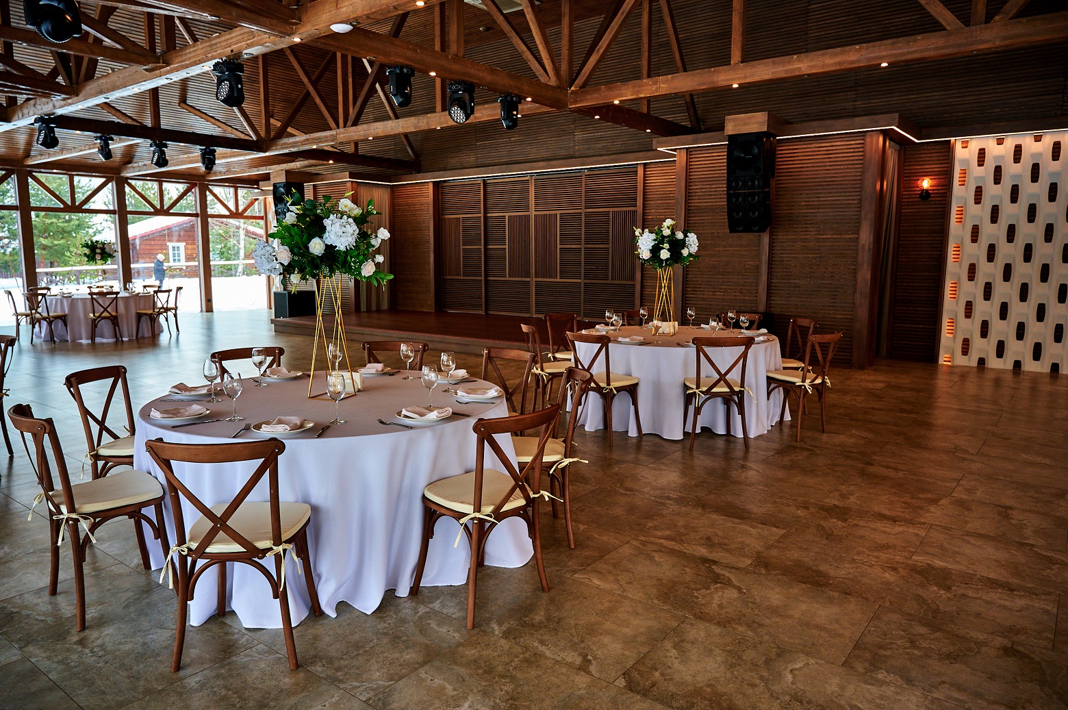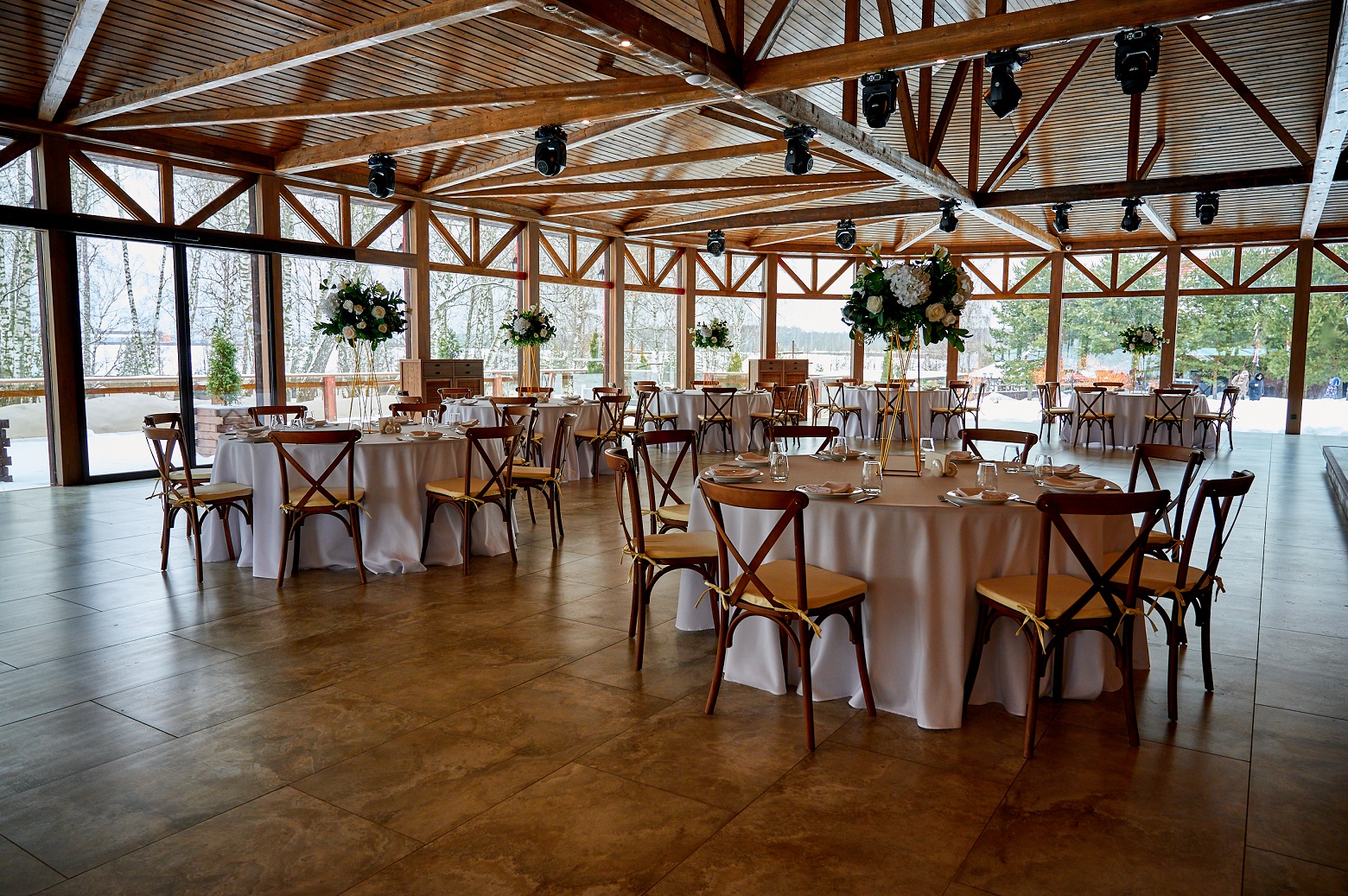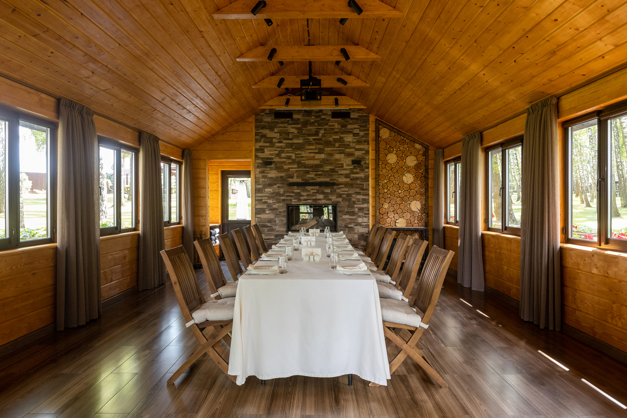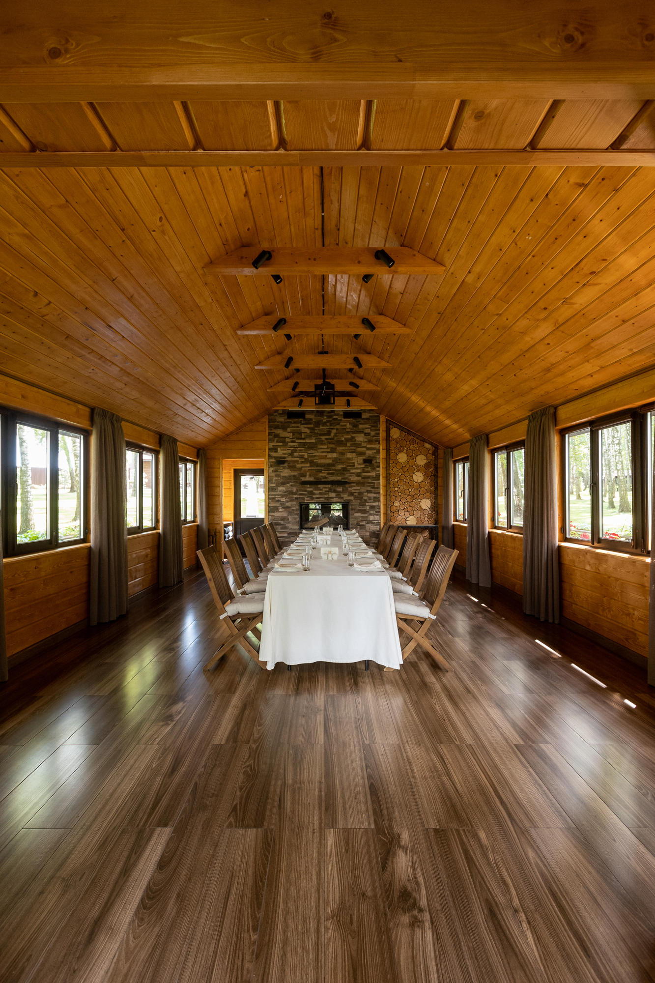 Эко-отель 4* на той же территории, что и площадки для мероприятий. Для событий, занимающих более одного дня, это прекрасная возможность продлить праздник. К услугам гостей – домики семейного формата и коттеджи на 10-12 человек, отдельный spa-центр с бассейном и русская баня. Все здания комплекса расположены в стороне от банкетных площадок и окружены пушистыми елями: мы заботимся о тишине и комфорте отдыхающих.