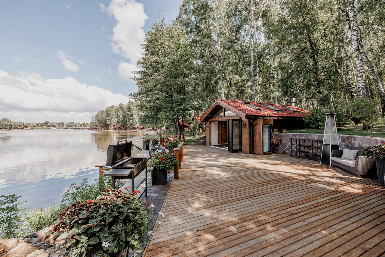 Мы находимся на частной охраняемой территории с живописным водоемом, окруженным березовой рощей. Продуманное зонирование локации позволяет насладиться тишиной и близостью природы – при максимально быстрой дороге из центра города.