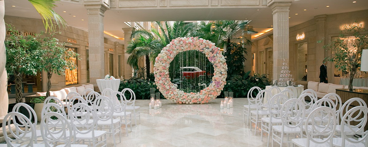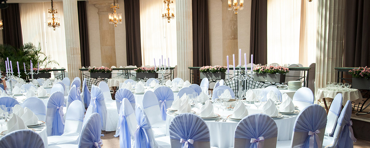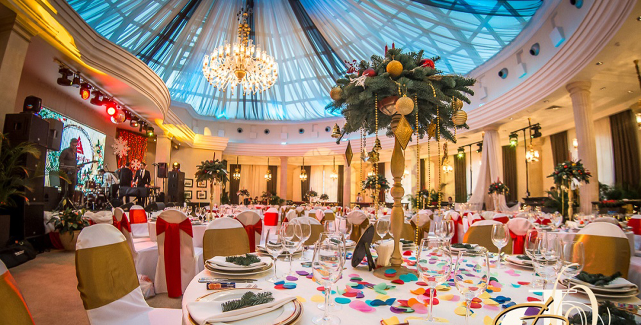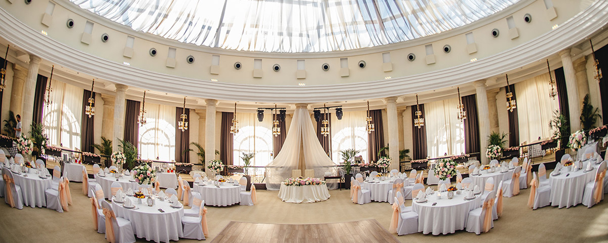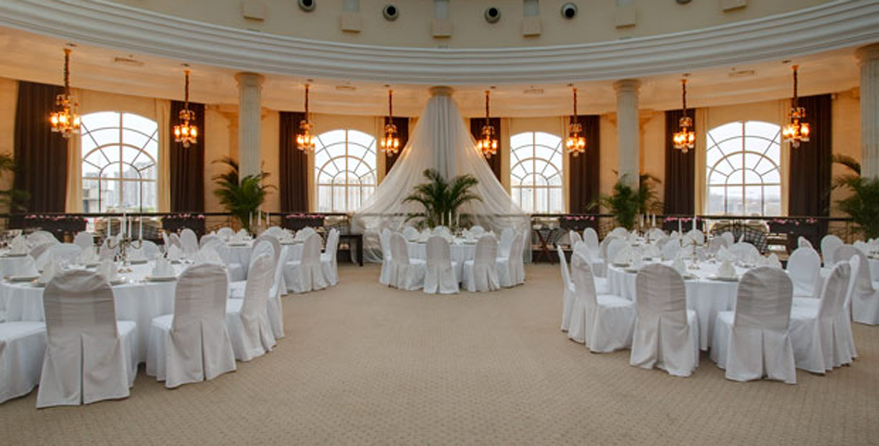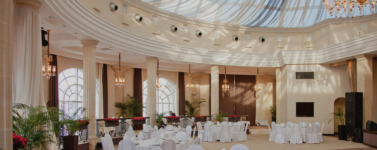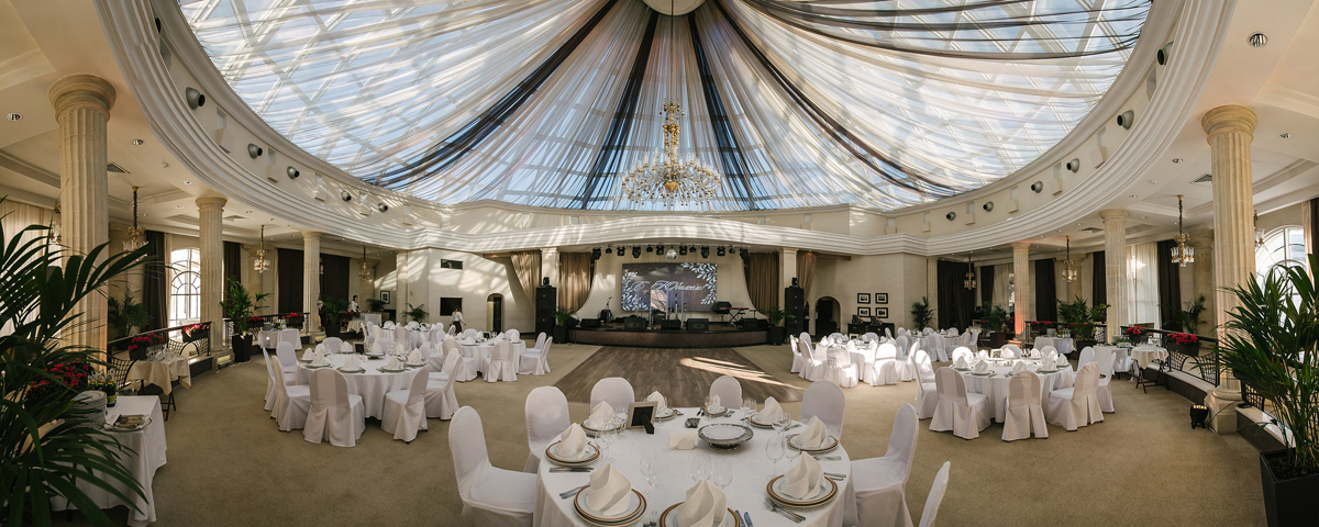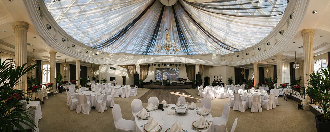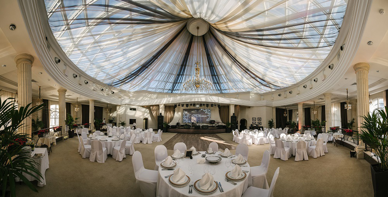 Высокий центральный купол зала, драпированный воздушной тканью, и большие эркерные окна с золочеными портьерами создают атмосферу торжественности дворцового бала. Полукруглый банкетный зал со сценой готов к приему на высшем уровне самых знаменитых гостей. Это место хранит воспоминания о выступлении джазового оркестра Дюка Элингтона, который дал свой концерт в рамках открытия торгового комплекса «Крокус Сити Молл» в 2002 году.