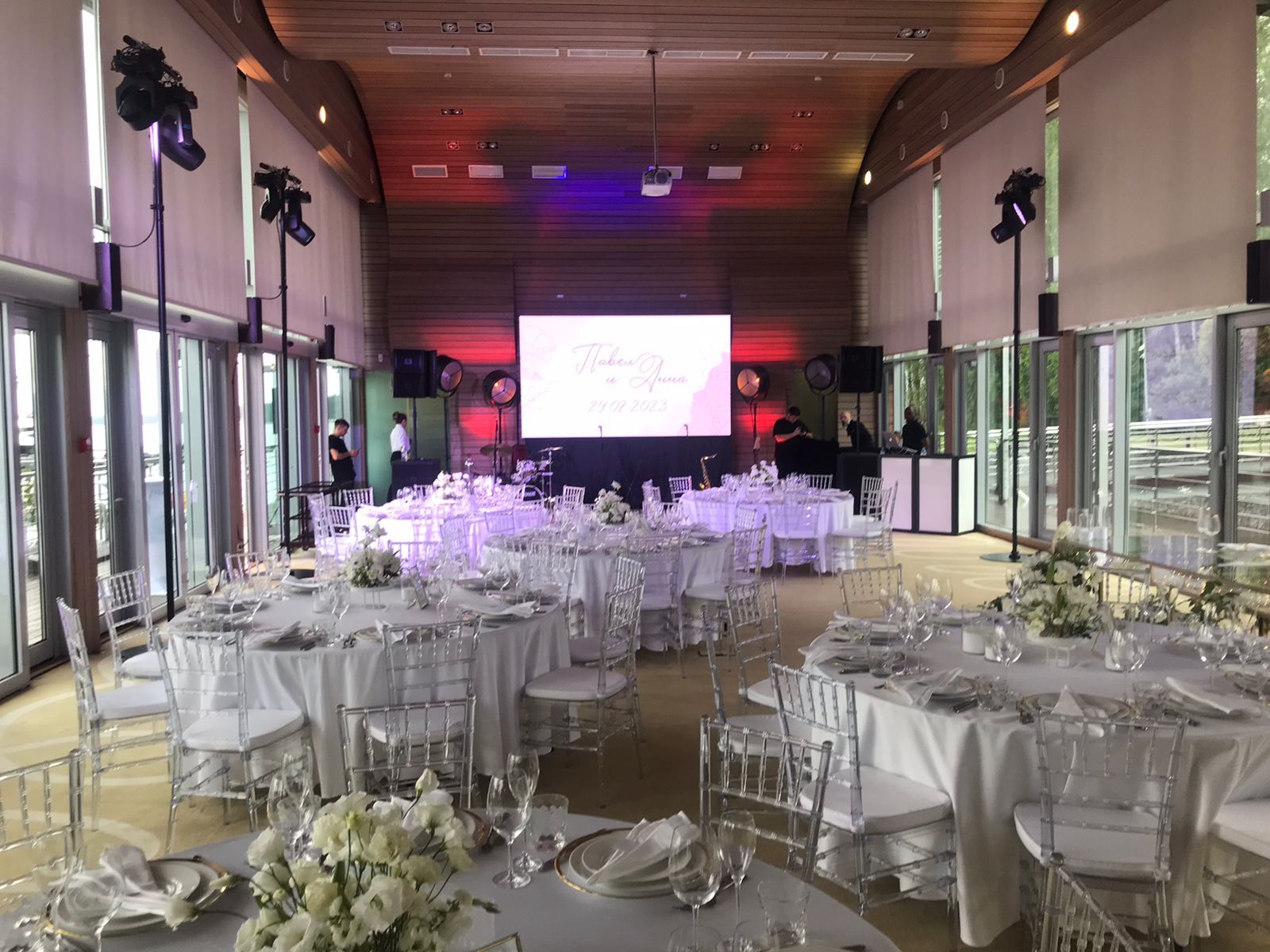 Можно совместить свадебное мероприятие в яхт-клубе с фотосессией в гольф-клубе. Если Ваш день торжества с понедельника по четверг, то можно провести мероприятие в гольф-клубе, в клубном доме, в роскошном ресторане с великолепным видом на изумрудные гольф-поля!