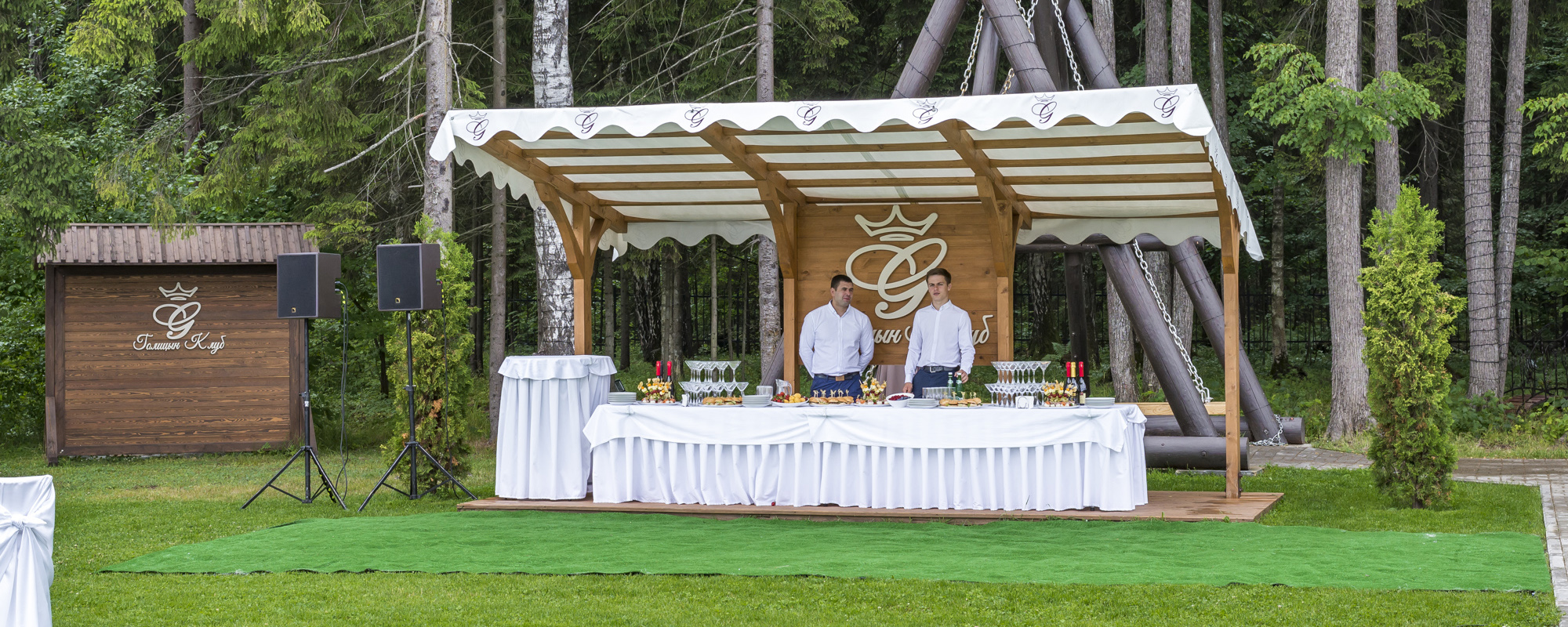 Гостинично-развлекательный комплекс "Голицын клуб" с радостью организует для вас любое торжество, будь то корпоратив, тимбилдинг или свадьба! Ресторан «Голицын» предложит вам вкуснейшие блюда европейской, итальянской, русской, американской и кавказской кухни, а сам банкет состоится в зале, подходящем именно для вашего торжества! Территория комплекса располагает живописным ландшафтом с колоритным альпинарием, на фоне которого легко устроить праздничную фотосессию! Наша команда имеет большой опыт в организации мероприятий. Банкетные менеджеры, фотографы, декораторы и ведущие, являющиеся профессионалами в своем сегменте, выберут лучшие решения для вашего торжества! Также вы можете выбрать отдых на любой вкус: конный клуб, спортзал, квадроциклы, знаменитые Голицынские бани и многое другое!