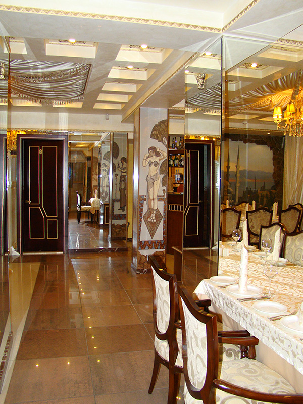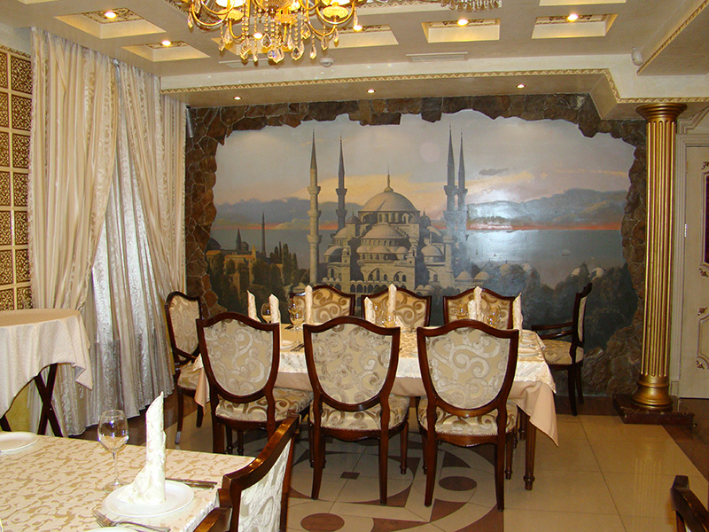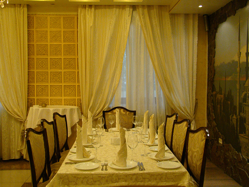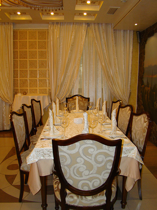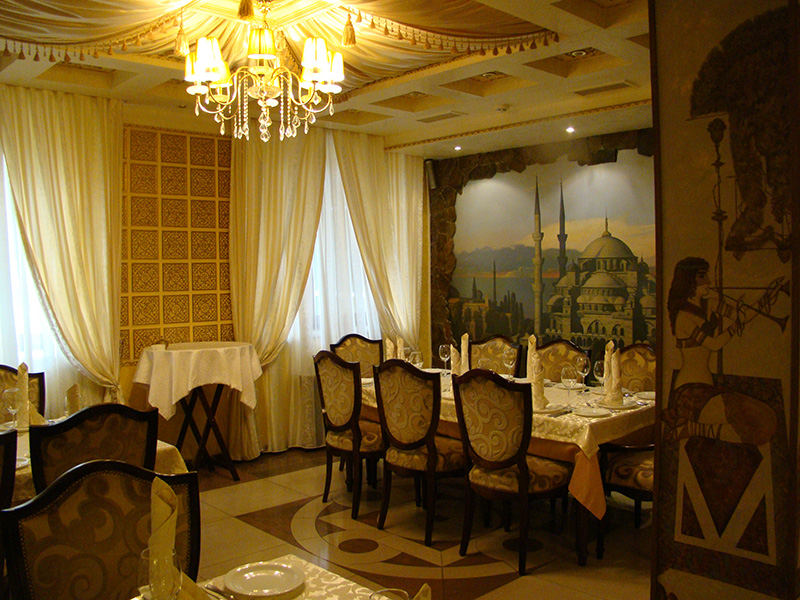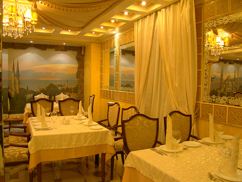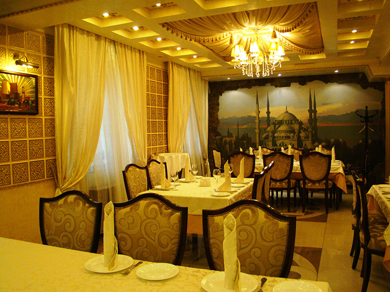 Ресторан в Сочи «Фидан» — это не просто название ресторана в Сочи, восточной кухни, это имя прекрасной гюзель, обозначающее росток, молодое деревце. Восточные мотивы в сочетании с классическими формами определили стилевую концепцию интерьера заведения.Растение, как стержень, заложенный в названии, можно заметить, и в гипсовых лепных формах, и в росписи; и в текстиле, и в мраморе. Став посетителем ресторана «Фидан» в Сочи, Вы сможете мгновенно окунуться в чарующую атмосферу Востока. Ваше воображение унесется далеко, в город древней истории и величественных пейзажей.