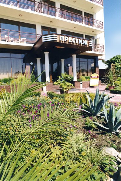 Гостиница отель «Престиж» - это ваш разумный и правильный выбор для комфортного отдыха в Сочи. Единственный отель в Сочи имеет уникальную особенность - расположение в первой береговой линии – 30 метров от моря! К пляжу отеля прямо от порога ведет прекрасная аллея с пальмами, что позволяет Вам за пару минут, выйдя из номера прямо в халате или легком парео, окунуться в теплые воды Черного моря! Только для гостей отеля–собственный оборудованный аэрарий на морском берегу! Пляжная зона отеля «Престиж» оборудована ночной подсветкой, что делает ночное купание для вас приятным и удобным. А уютно расположившись на балконе номера, вы можете любоваться морем, утренним солнцем и романтическим закатом! Ваш отдых в Сочи сделают комфортным современные номера отеля, в которых предусмотрена любая мелочь. Для удобства Вы можете забронировать номер в отеле прямо на сайте отеля online, посмотреть стоимость номера в гостинице в соответствующем разделе. К услугам гостей ресторан, кафе расположенное на берегу моря, ночная дискотека, песчано-галечный пляж, сауна с бассейном, массажный кабинет, бильярд, собственные водные аттракционы: гидроциклы, катер, парашют, банан и многое другое предлагается гостям нашей гостиницы.