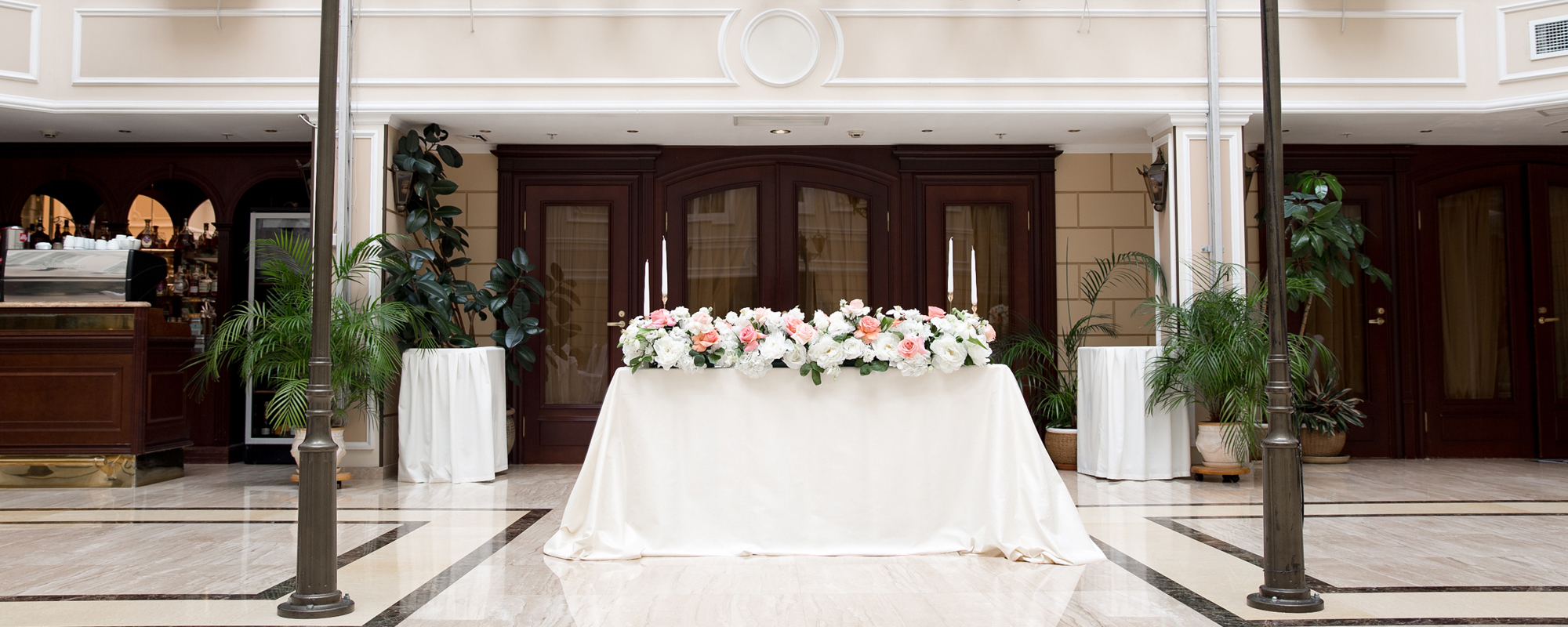 Трудно придумать более подходящий зал для свадьбы в европейском стиле, чем атриум «Версаль», расположенный на третьем этаже GRAND HOTEL EMERALD. Легкие, воздушные интерьеры под высокой стеклянной крышей с обилием дневного света создают романтическое и торжественное настроение, а выбор блюд и напитков, из которых можно составить свое собственное праздничное меню, приятно удивит даже самого взыскательного гурмана.