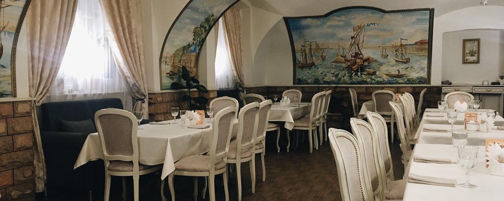 Небольшой ресторан недалеко от Стрелки Васильевского острова. «Нева» –уютный уголок, расположенный в самом сердце города. Здесь можно организовать любое торжество и провести романтический вечер. Интерьер классический – мебель украшена гобеленами, на стенах яркие фрески. Из окна открывается панорамный вид на Петербург. Подают здесь блюда европейской, итальянской и кавказской кухни, так что каждый гость сможет найти что-то по своему вкусу. Вечером в заведении играет приятная фоновая музыка.