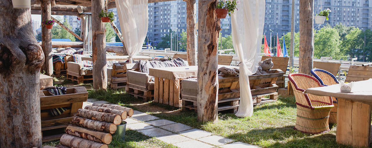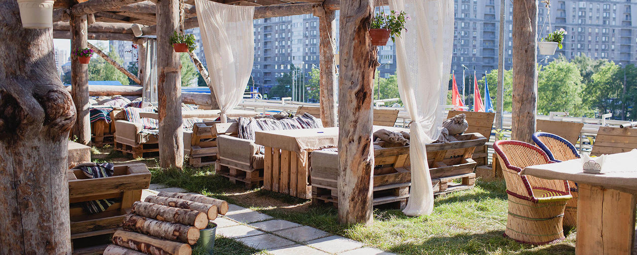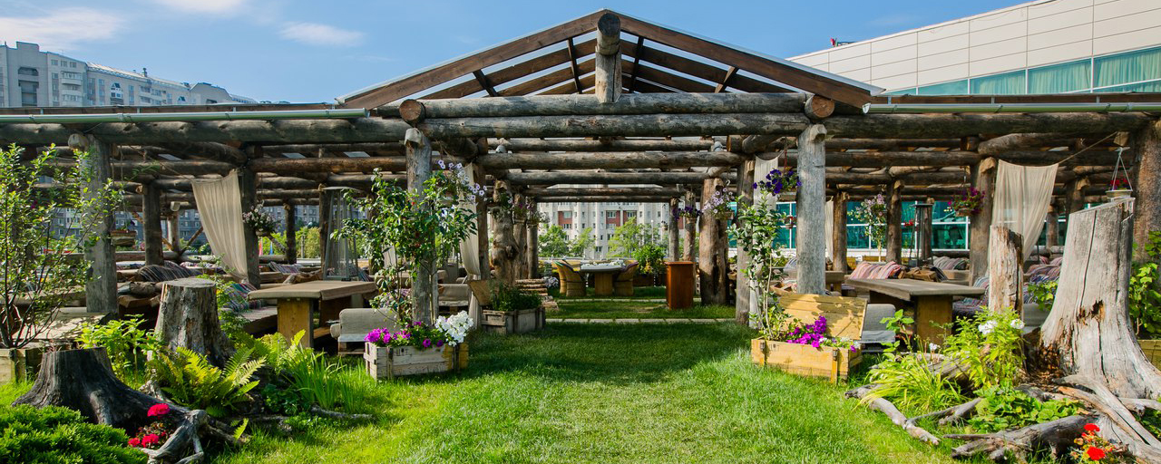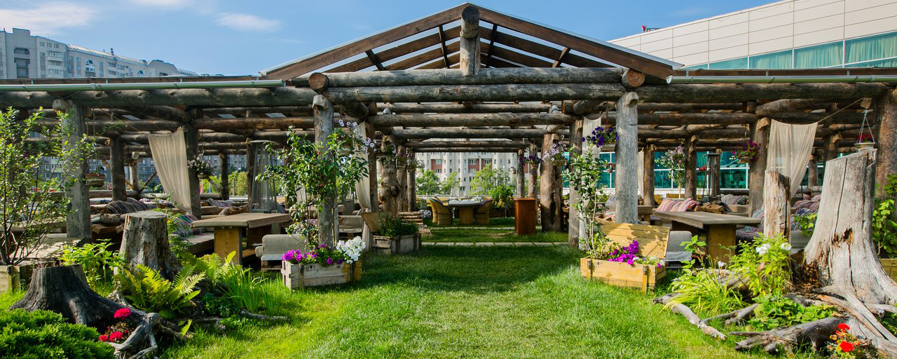 Те, кто не успевает за город, могут расположиться у нас на веранде, которая стала оазисом торгового комплекса на Коломяжском проспекте.