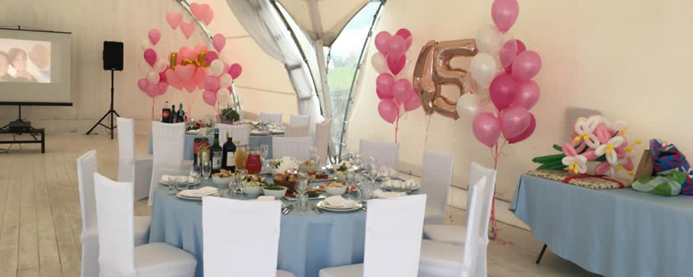 Большая территория позволяет не только размещать гостей за столом, но и организовать подвижные или спортивные мероприятия.