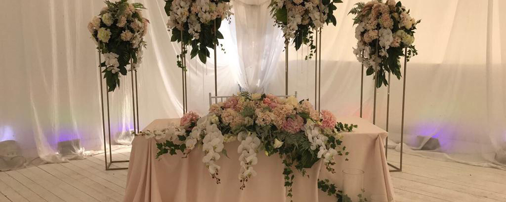 Для выездной регистрации брака мы установим для Вас специальный подиум и арку, украсим по желанию цветами или драпировкой, украсим выбранную банкетную площадку согласно тематике Вашего мероприятия.