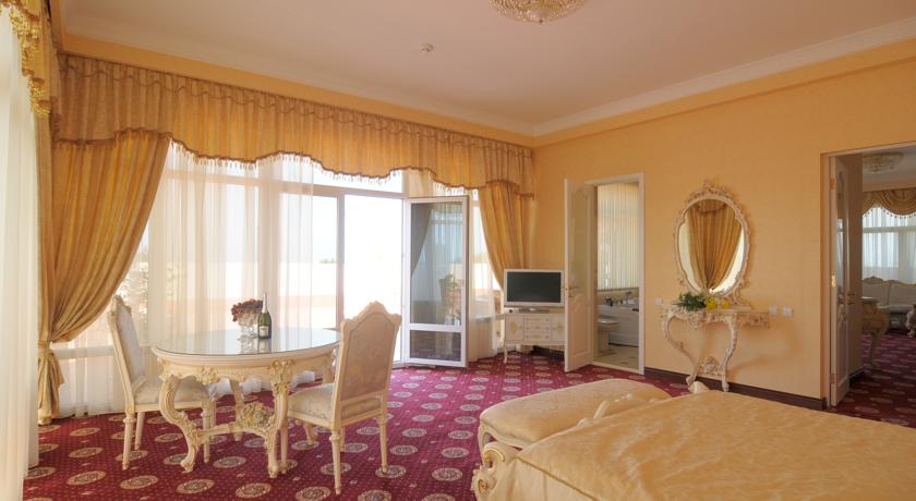 Из большинства номеров открывается вид на море. Удаленность от пляжа 30-150 м в зависимости от корпуса санатория. В каждом номере: кондиционер, холодильник, спутниковое телевидение, внутренняя -междугородняя телефонная связь. Номера категории "Студия", "Люкс", "Апартаменты" и "Сюит" оборудованы сейфом.