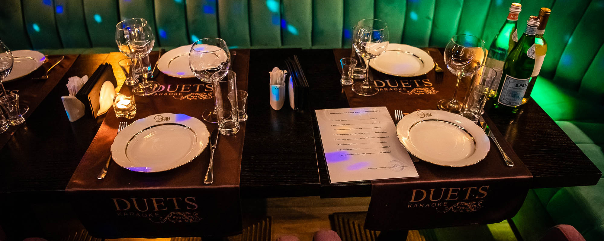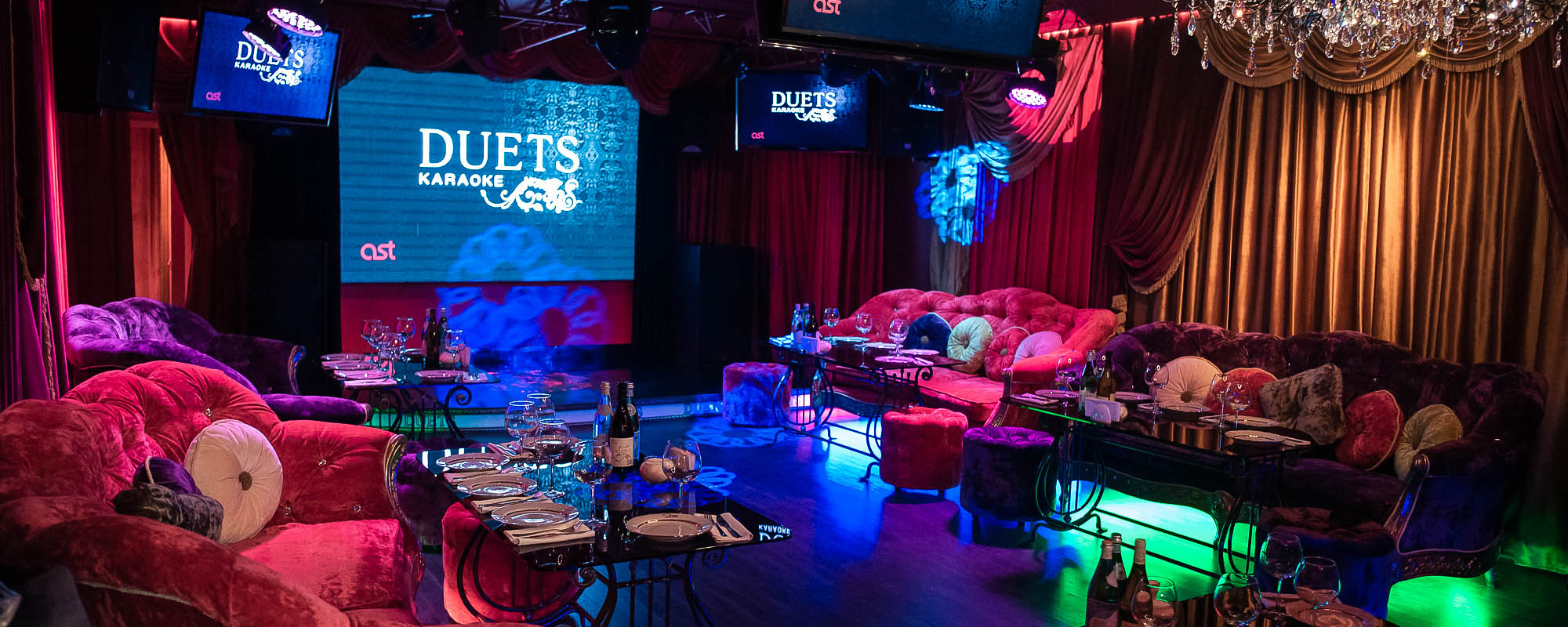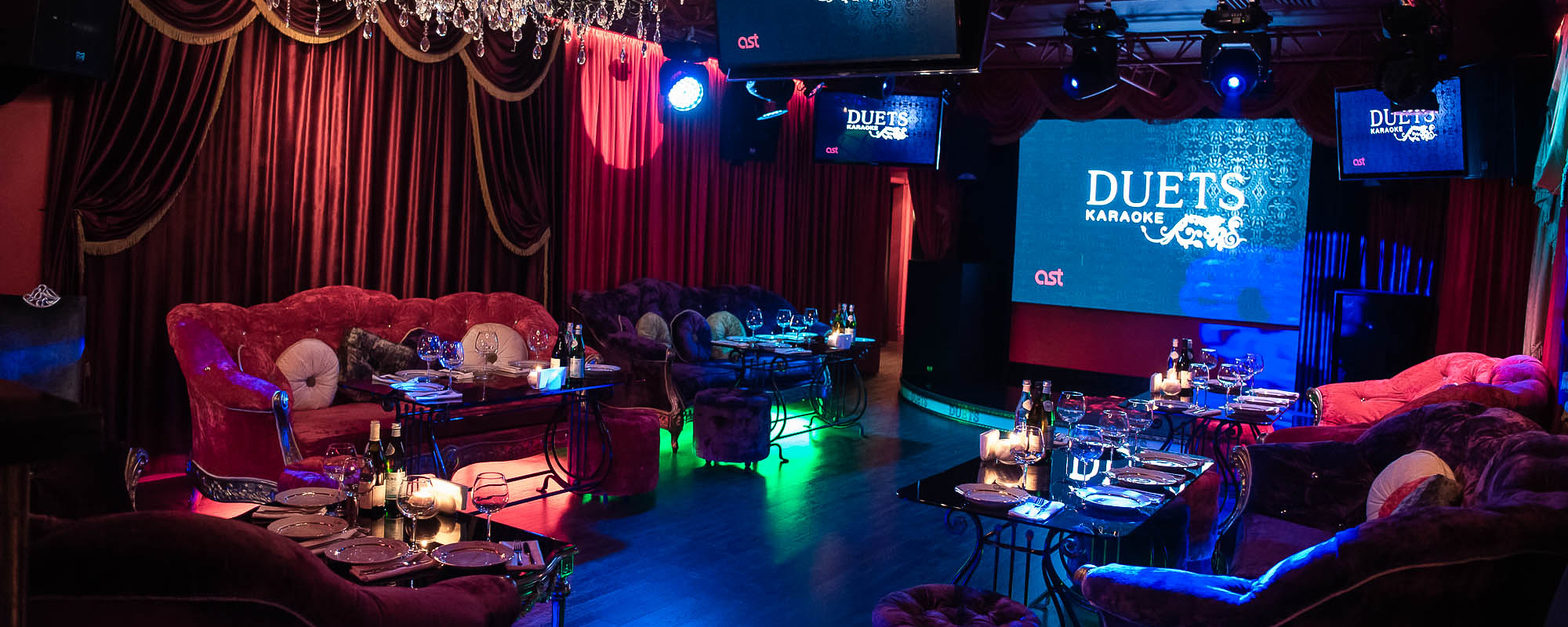Караоке-ресторан DUETS приглашает ценителей вкусной кухни и хорошей музыки. Четыре тематических зала от 10-50 персон, профессиональное звуковое и световое оборудование, танцполы, европейская и японская кухни.