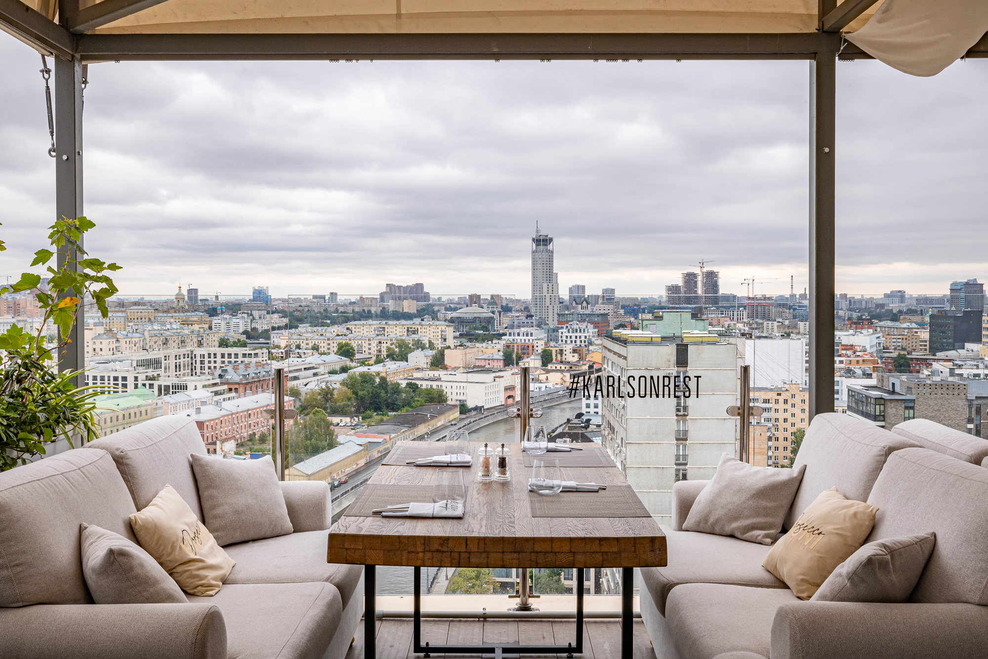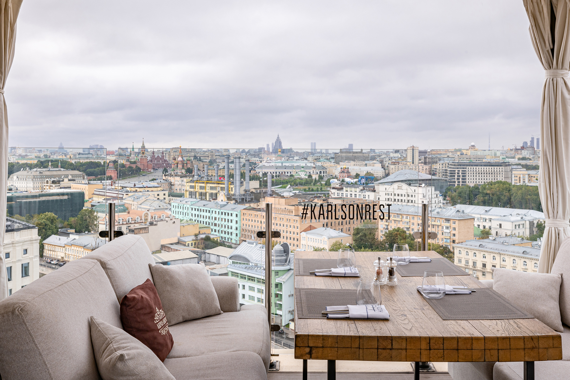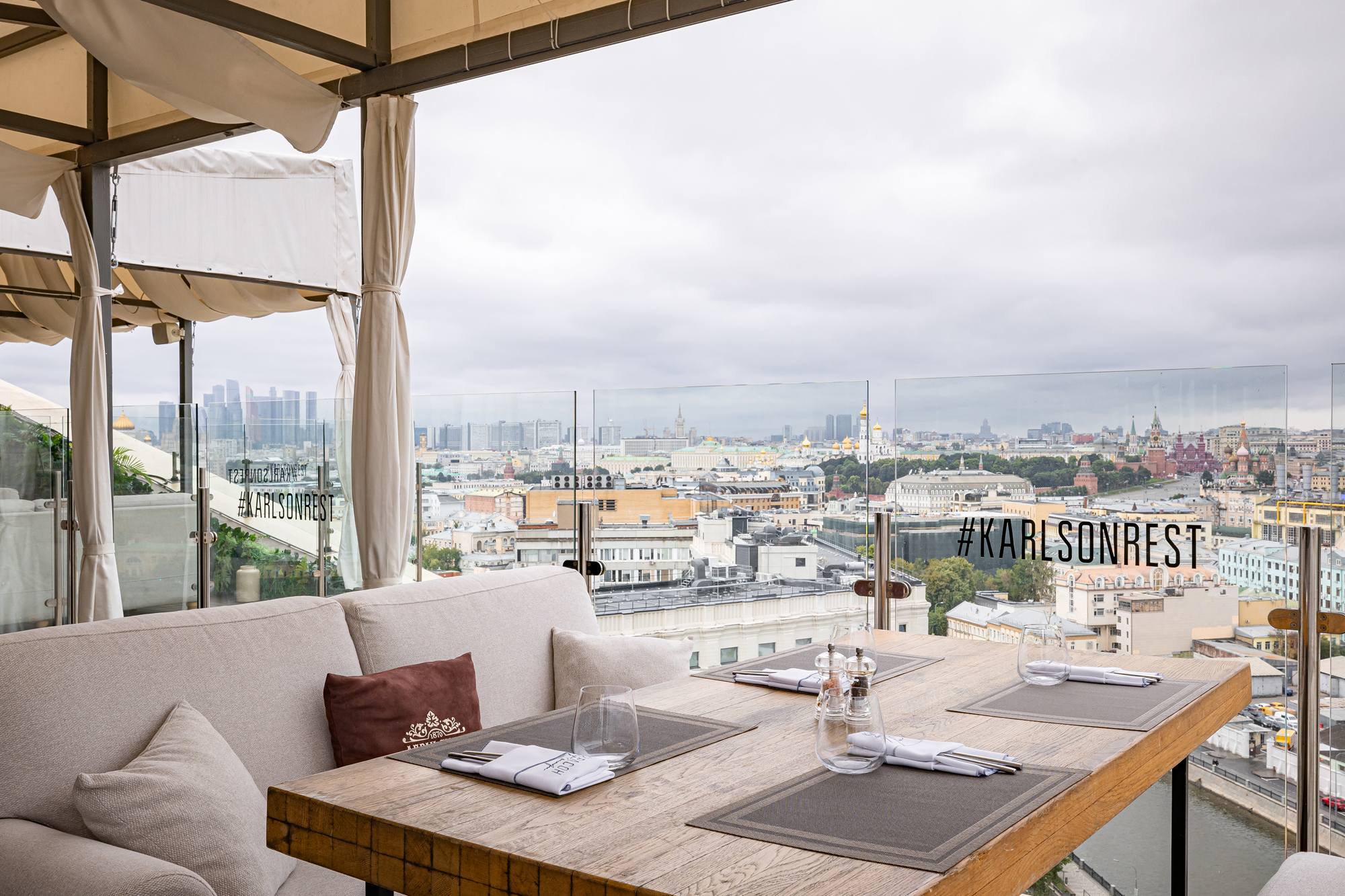 Панорамный ресторан «Карлсон» — одно из лучших мест в городе, чтобы расслабиться и не спеша любоваться великолепным видом на Кремль, закатами и огнями Москвы, наслаждаясь вкусными блюдами и напитками. В зале могут разместиться до 120 гостей, а в теплое время года работает зеленая, воздушная веранда с уютными диванами, которая вмещает до 200 гостей. В будние дни в ресторане действует скидка 20% на блюда и напитки, кроме блюд отмеченных * и специальных предложений. Также по будням до 16:00 действует специальное предложение с блюдами от нашего шеф-повара, которые прекрасно подойдут для вкусного и красивого обеда. Еще одним приятным бонусом станет скидка 10%, именинникам и молодоженам, которая предоставляет в день вашего события при предъявлении оригинала паспорта или водительского удостоверения.