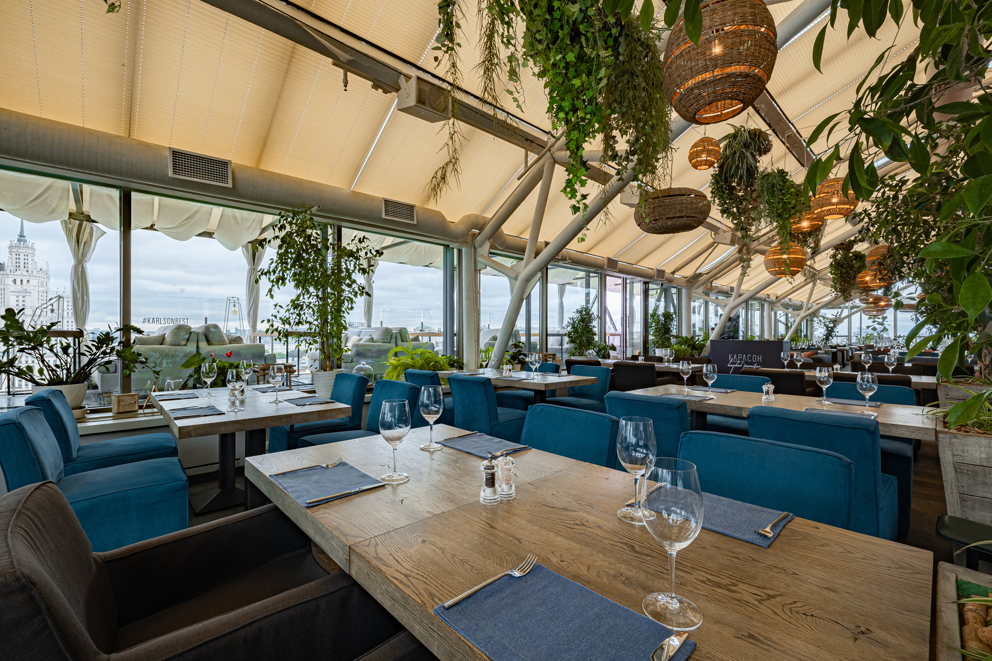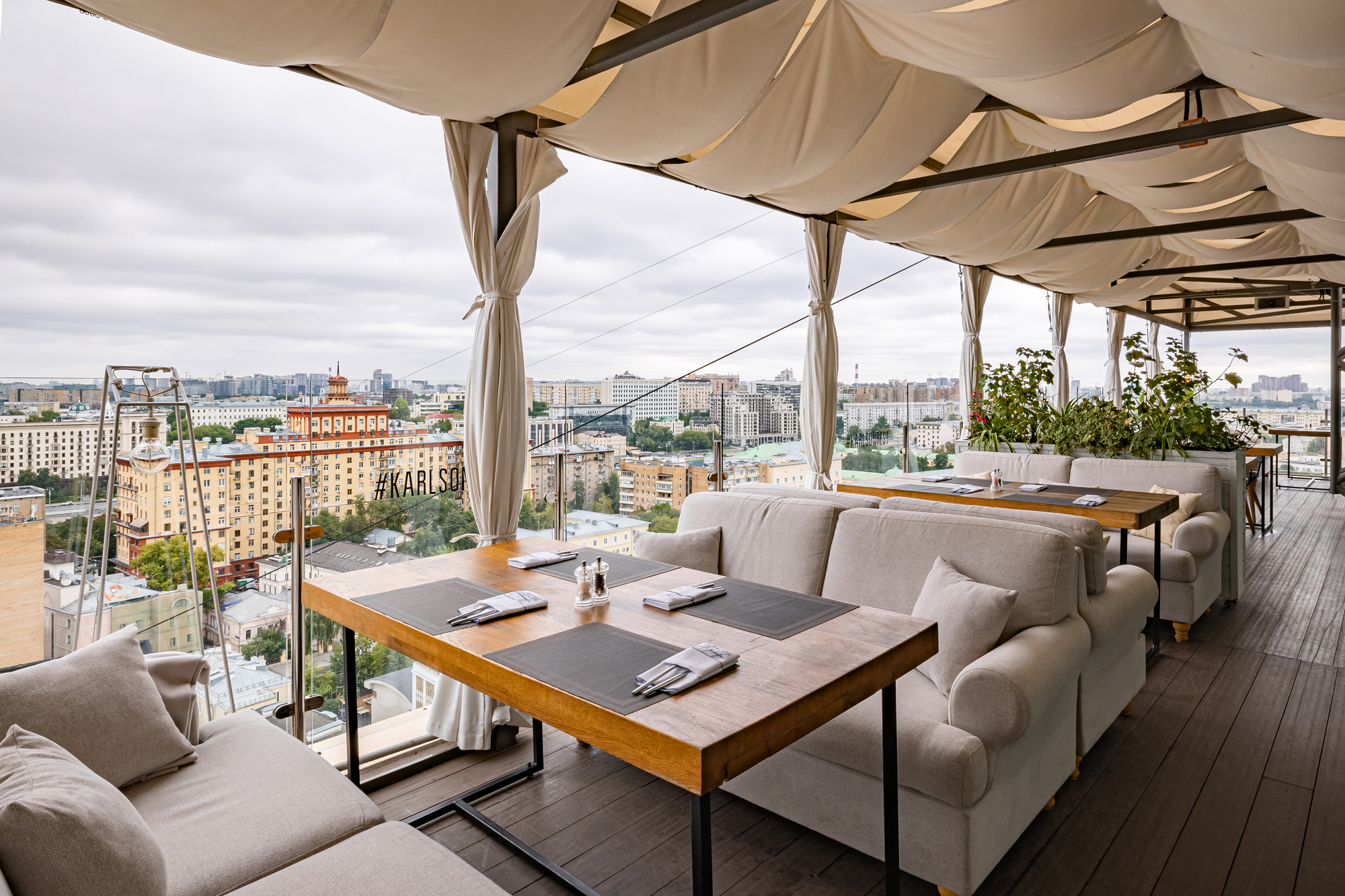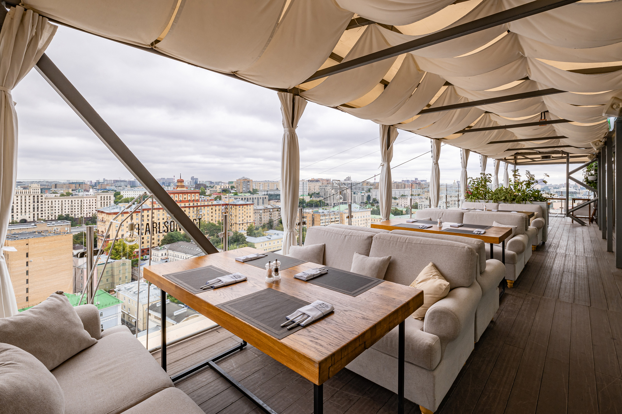 Панорамный ресторан «Карлсон» — одно из лучших мест в городе, чтобы расслабиться и не спеша любоваться великолепным видом на Кремль, закатами и огнями Москвы, наслаждаясь вкусными блюдами и напитками. В зале могут разместиться до 120 гостей, а в теплое время года работает зеленая, воздушная веранда с уютными диванами, которая вмещает до 200 гостей. В будние дни в ресторане действует скидка 20% на блюда и напитки, кроме блюд отмеченных * и специальных предложений. Также по будням до 16:00 действует специальное предложение с блюдами от нашего шеф-повара, которые прекрасно подойдут для вкусного и красивого обеда. Еще одним приятным бонусом станет скидка 10%, именинникам и молодоженам, которая предоставляет в день вашего события при предъявлении оригинала паспорта или водительского удостоверения.