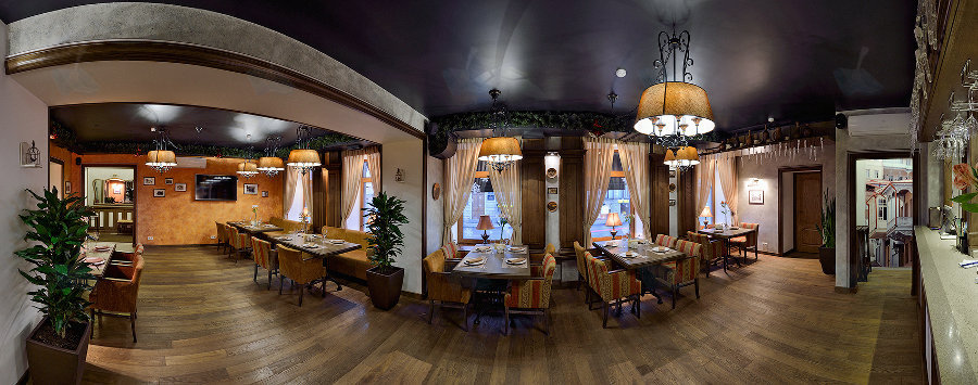 Уютный интерьер трех залов: теплые оттенки, приглушенный полумрак, живые цветы, натуральные материалы, добротная мебель, оригинальные аксессуары. Винная карта изобилует десятками элитных сортов вина. Масштабный выбор меню кухни: хинкали из баранины, долма, нежные салаты из баклажанов, пахлава.
