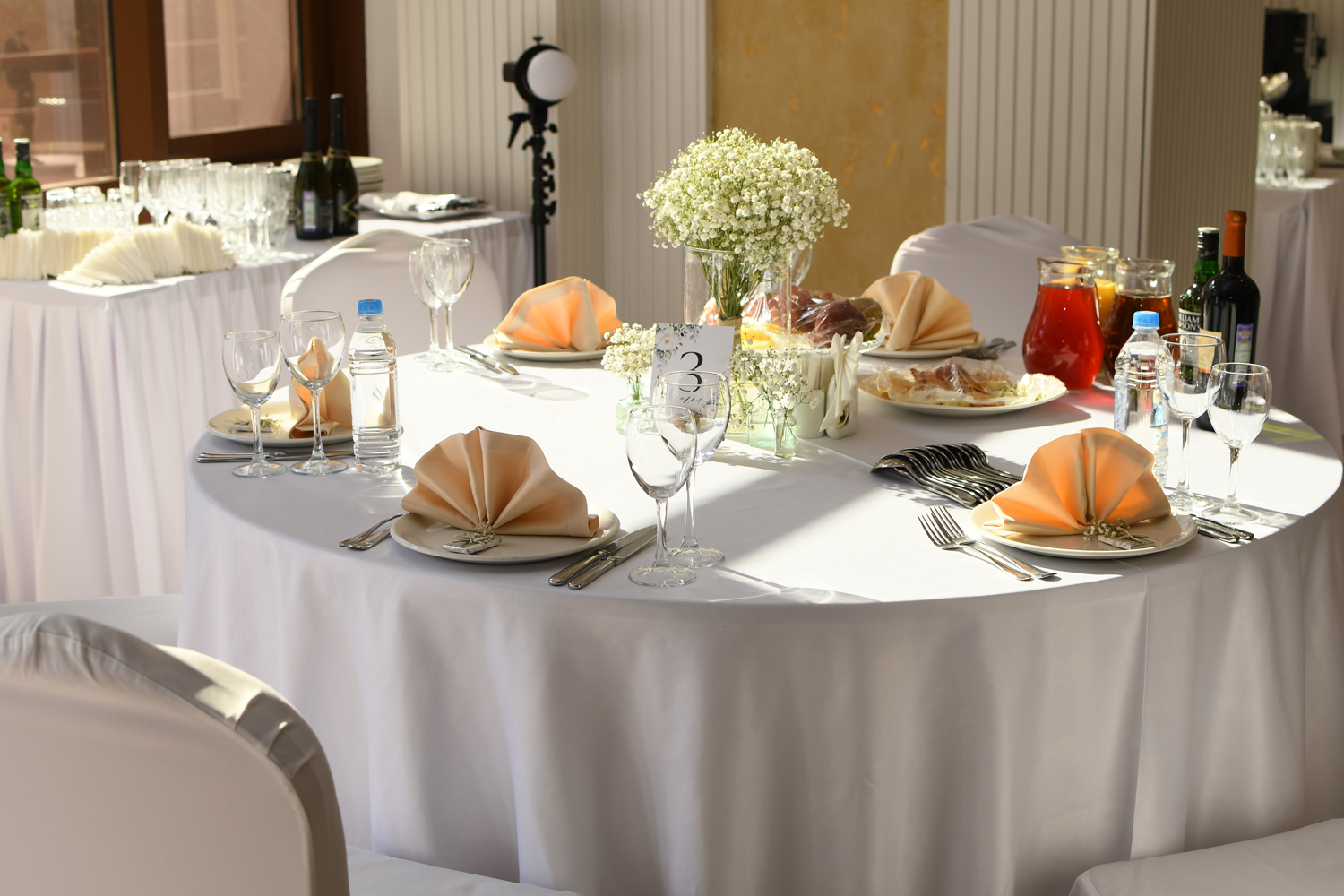 Малый шатер, площадью 260 кв.м., декорирован белоснежным текстилем. Идеален для проведения банкетных мероприятий в летнее время года (функционирует с 28 мая по 15 сентября). Расположен в уютном уголке, в окружении хвойного леса в небольшом отдалении от основного здания отеля.