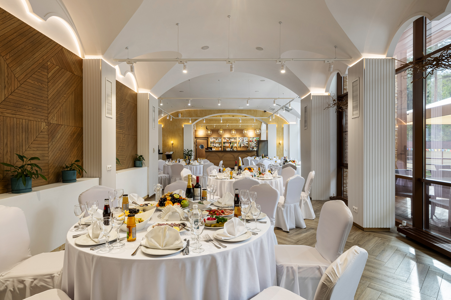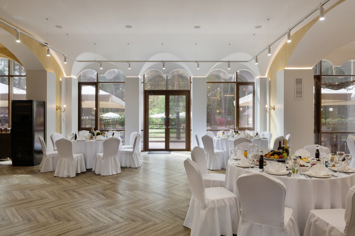 В этом зале также есть собственный выход на летнюю веранду, которая может быть оборудована в качестве зоны отдыха для гостей. Например, при проведении фуршета или кофе-брейков.