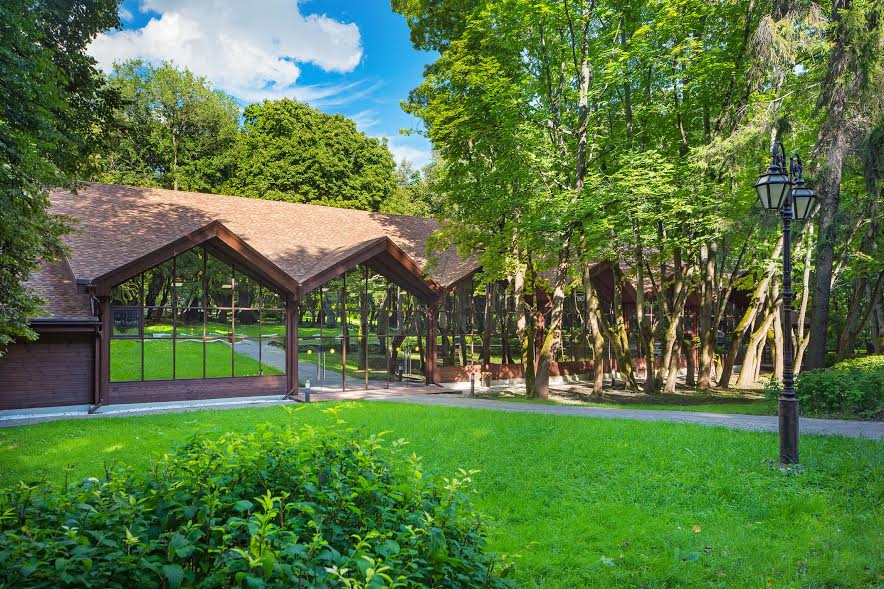 Уникальностью конгресс-парка «Волынское» является современная летняя веранда, выполненная из экологически чистых материалов – стекла и дерева, площадью 1500 кв. м., вместимостью до 1000 человек (фуршет). Веранда представляет собой luxury аналог шатровых конструкций, со стационарными туалетными комнатами, гардеробом, гримеркой и подсобными помещениями.