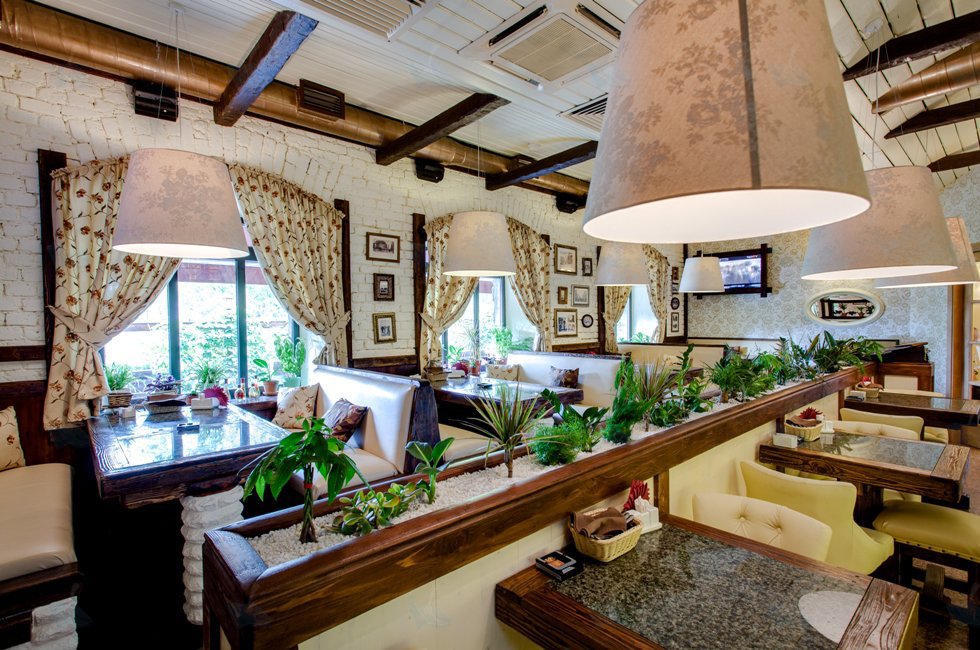 Интерьер и атмосфера этого заведения не оставит равнодушным ни одного из гостей. Напервом этаже гостей ждет небольшой бар. Здесь можно отведать легкие закуски, а такженасладиться прекрасным вином. Его интерьер выполнен в светлом элегантном стиле:современные и классические формы, бежевые тона, отделка мягкой тканью и, конечно же,по-семейному уютная обстановка и качественный сервис придутся по вкусу даже самомувзыскательному гостю.
