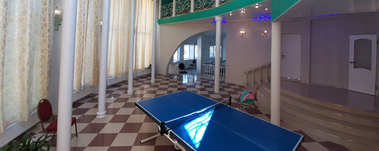 - 1 этаж – банкетный зал для небольшой компании, кухня, танцевальная зона, караоке, теннисный стол, бассейн и сауна.