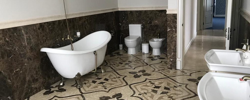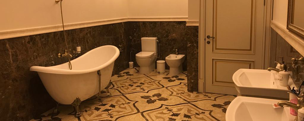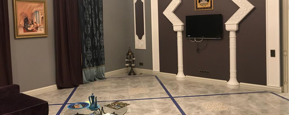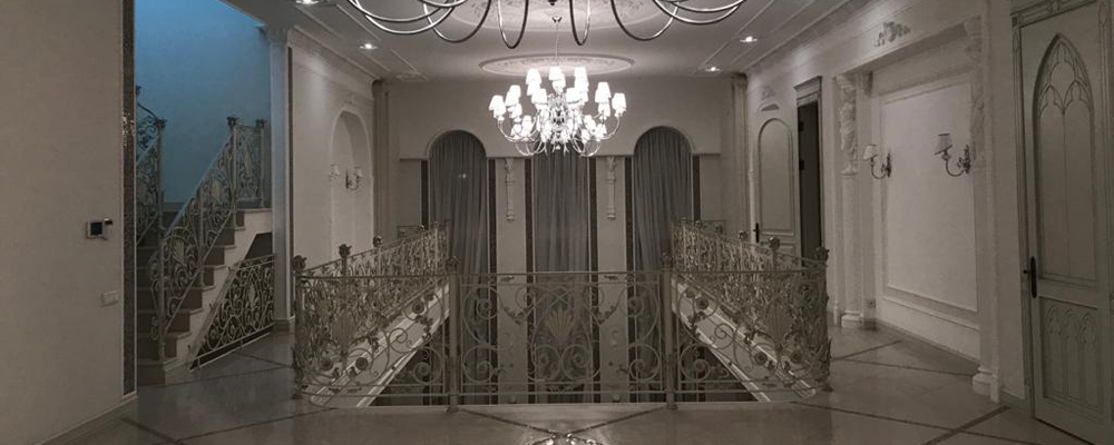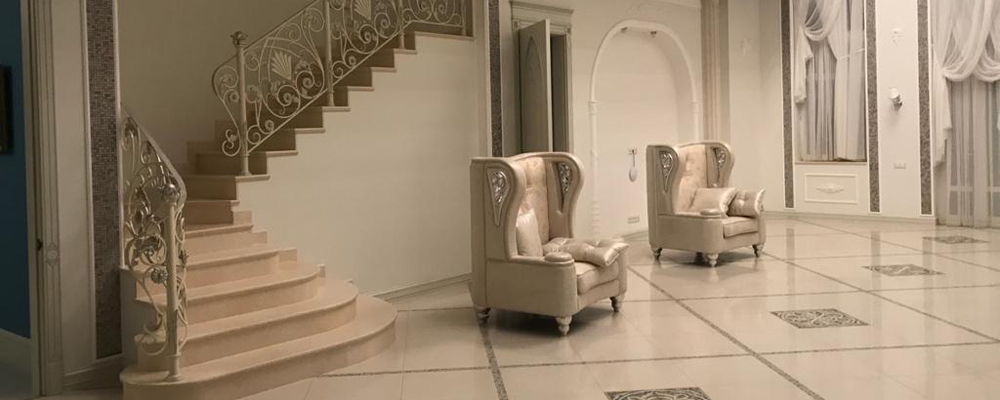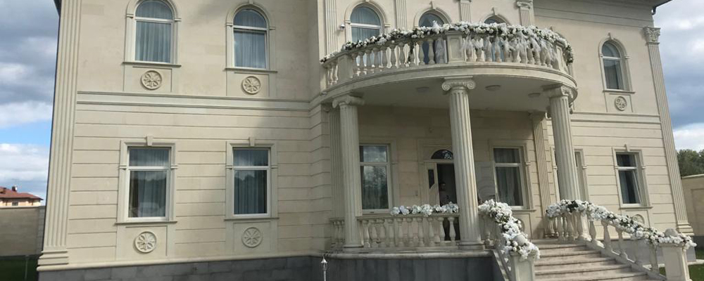 - Уникальный дизайн – коттедж оформлен в византийском стиле. Внутренние помещения с высокими потолками – от 4 метров, а в зале для приёмов – 8 метров. В отделке коттеджа использовались только качественные натуральные материалы – более 100 т природного камня, 7 мозаик ручной работы и обилие авторской лепнины из натурального гипса.