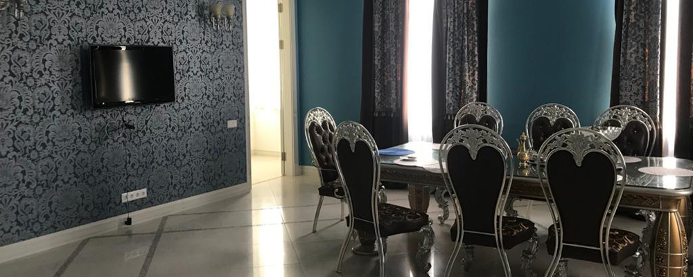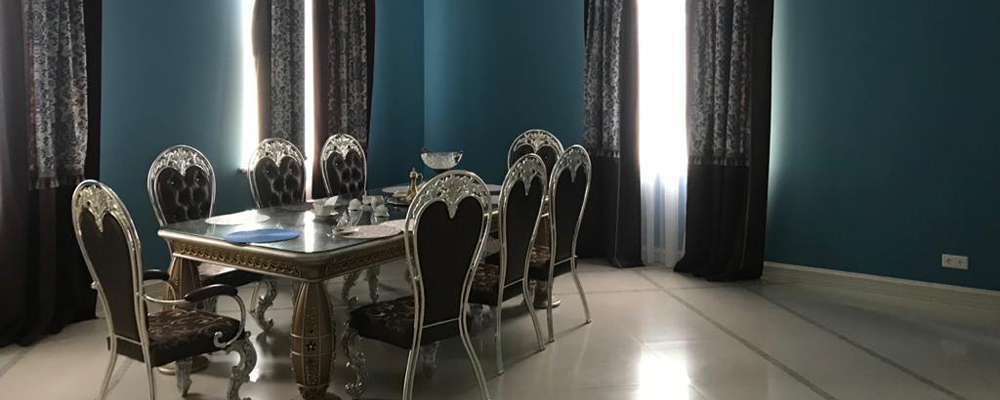 - Количество столов: два стола в столовой – каждый на 10-12 человек.