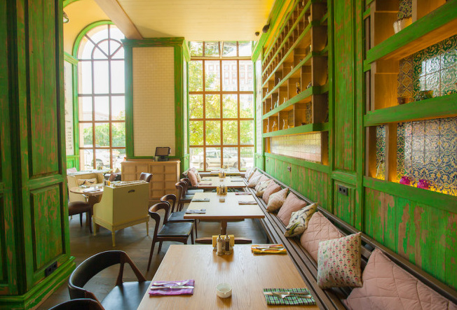 Двухэтажный ресторан «Кристиан» расположен на Кутузовском проспекте. Яркий, жизнерадостный и легкий облик ресторана построен на мягких контрастах цветов и фактур. Бежевые и зеленые тона, белые кресла в духе ретро и коричневые кожаные стулья, состаренное дерево и светильники в стиле модерн – все это придает интерьеру ресторана «Кристиан» очарование, сообщая ему интересные нотки. Пестрая облицовка стен, панорамные окна-арки, длинные скамьи напоминают о загородном отдыхе.